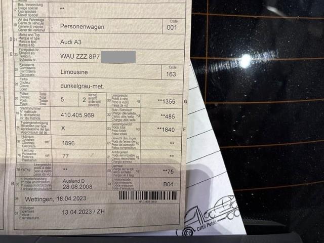 Rechts Rechte Seite beschädigt. Anstoss rechts im Bereich der B-Säule. Anstoss rechts im Bereich der C-Säule. Heck Achse Sonstige Schäden |