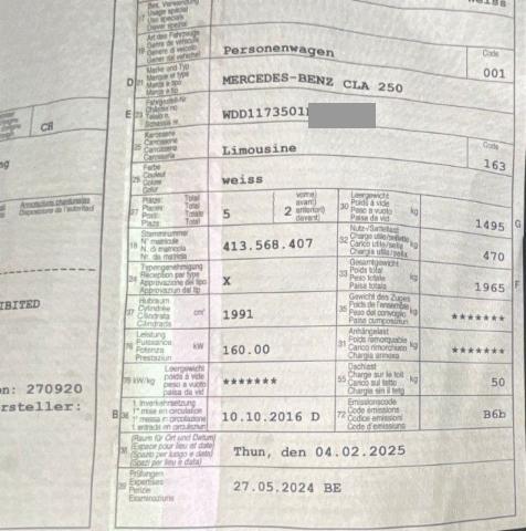 Demontage Persönliche Gegenstände oder Ladegut im Fahrzeug werden entfernt. Zustand Bereifung Schlüssel Kategorie |