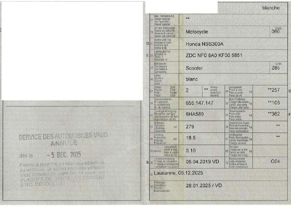 | Tipo veicolo / Costruzione / Porte | Motoveicolo / Scooter / 0 |