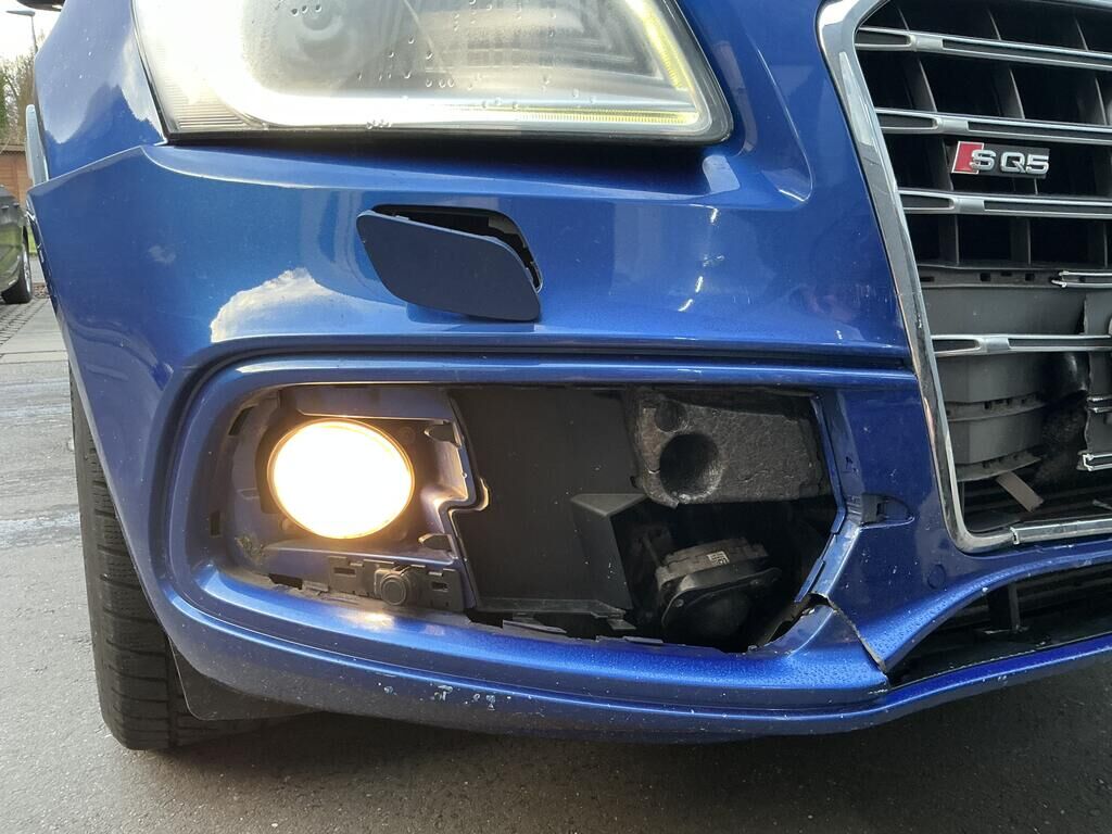 Collision avant: pare-chocs, grilles, calandre, capteur, radar ACC, capot, phares, traverse, radiateurs, condenseur, intercooler supports, guides endommagés.