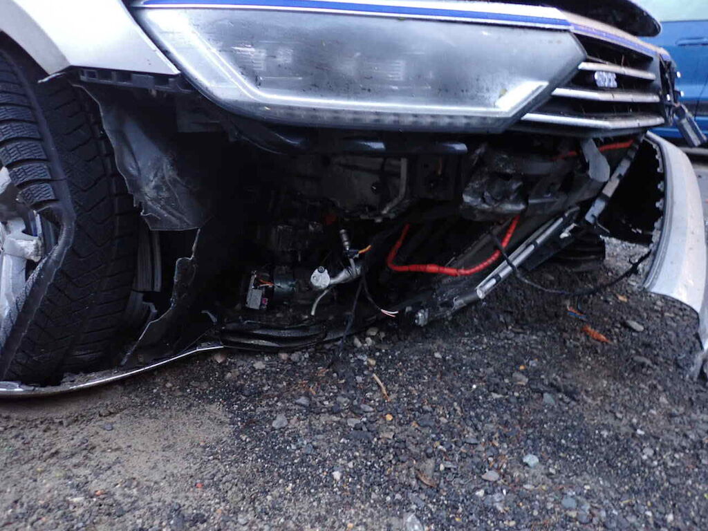 Parte anteriore danneggiata, parte meccanica ruota anteriore destra e radiatori rotti