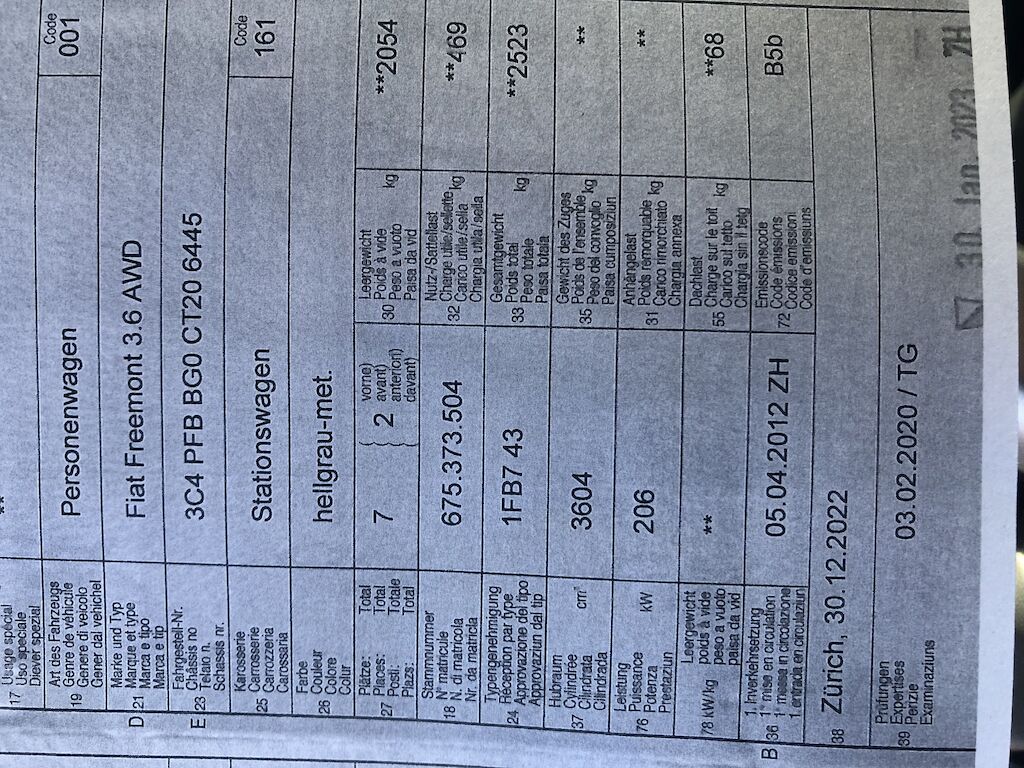 | Tipo | Freemont 3.6AWD / 4×4 / Automat / Klima / 7 Plätze |
