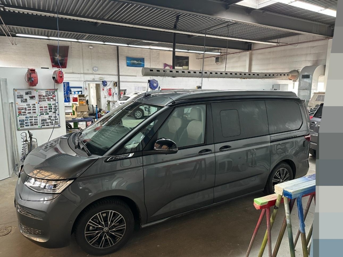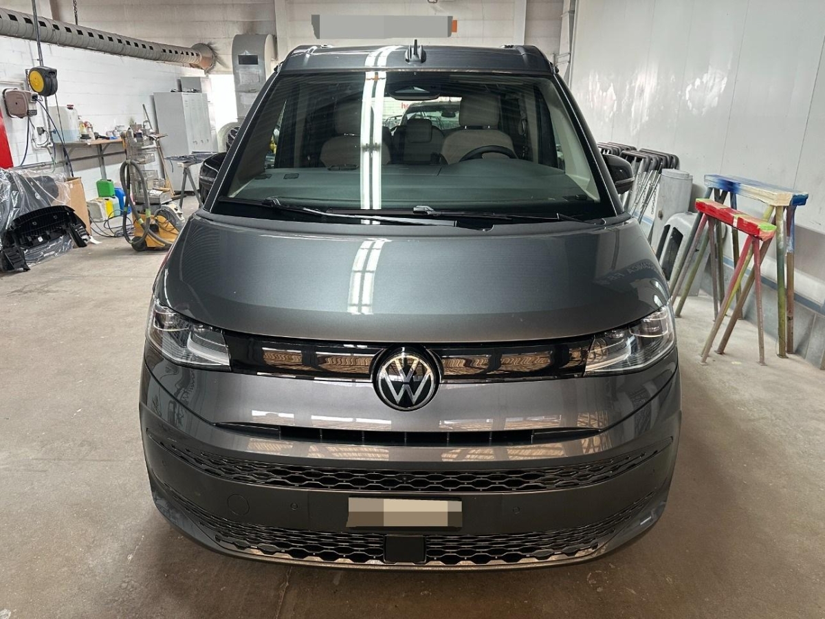 Paket: Top Paket (Sicherheitsinnenspiegel, automatisch abblendend, Licht: Leuchtweitenregulierung dynamisch mit dynamischem Kurvenfahrlicht, Licht: IQ.LIGHT-LED-Matrix-Scheinwerfer mit LED-Tagfahrlich, Licht: LED-Rückleuchten abgedunkelt, Licht: Tagfahrlichtschaltung mit Assistenzfahrlicht sowie “Coming home” und “Leaving home”-Funktion, Licht: Dynamische Fernlichtregulierung “Dynamic Light Assist” für LED-Matrix-Scheinwerfer, Scheibenwischer-Intervallschaltung mit Regensensor für die Frontscheibenwischer, Klima: 3-Zonen Klimaanlage “Air Care Climatronic” mit zusätzlichem Bedienteil im Fahrgastraum, Licht: Schlechtwetterlicht (inklusive Abbiegelicht)), Paket: Parkpaket Advanced (Assist: Umgebungsansicht “Area View” inklusive Rückfahrkamera “Rear View”, Assist: Parklenkassistent “Park Assist” und Ultraschall-Einparkhilfe vorne und hinten), Assist: Fahrerassistent “Travel Assist” inklusive Spurhalteassistent “Lane Assist” und Emergency Assist, Assist: Proaktives Insassenschutzsystem, Lackierung: Metallic-Lackierung, Teppich-Fussmatten im Fahrerhaus, Anhängevorrichtung anklappbar, mit elektrischer Entriegelung, Räder: Leichtmetallréder “Dundrod” 6,5J x 17, in Schwarz, Oberfléche glanzgedreht, Frontscheibe in Verbundsicherheitsglas, wärme- und geräuschdämmend, beheizbar, Klima: Camper Standheizung für Dauerbetrieb, Zuziehhilfe beidseitig für Schiebetüren, Polster: Bi-Color Sitzbezüge, Sitzmittelbahnen in Mikrovlies “ArtVelours” – Sitzwangen in Glattlederoptik, mit 4-Wege-Kopfstütze, 4 Funkklappschlüssel, Innenbeleuchtung an Aufstelldach, Heckklappe und Sommerküche (Ocean), Schiebefenster mit Fliegengitter in der Schiebetür, links und rechts inklusive Privacy Verglasung im Fond, Sitze: Sitzheizung für beide Sitze im Fahrerhaus links und rechts getrennt regelbar