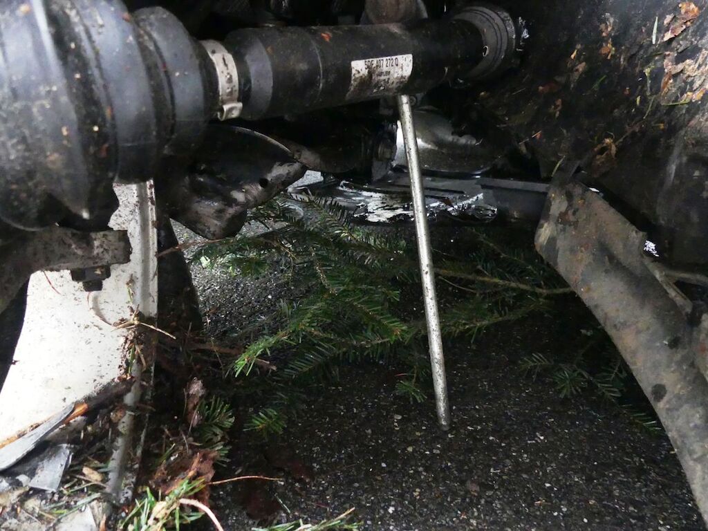 Kotflügel, Stossfänger mit Träger, Pralldämpfer, Gitter, Scheinwerfer und Nebelleuchten, Frontmaske mit Schlossblech, Radhausblech deformiert, Türe vorne, A-Säule unten, komplette Radaufhängung mit Lenkung, Achsschenke, Stossdämpfer, Antriebswelle etc.
