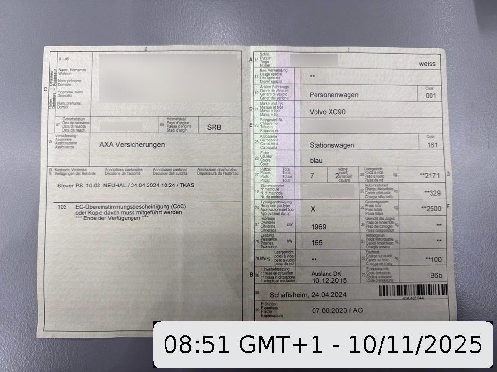 Fahrzeugausweis Vorhanden