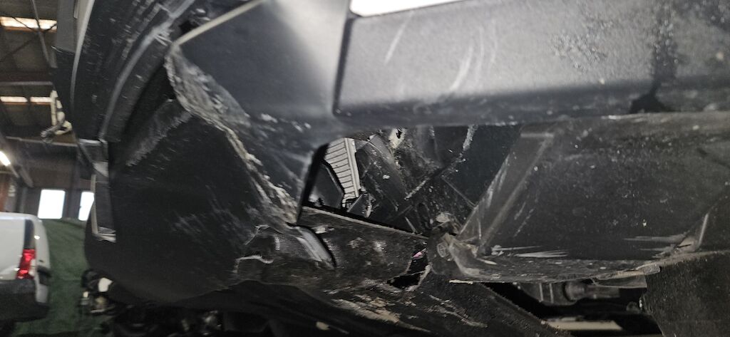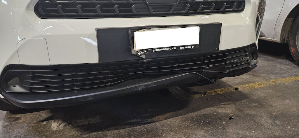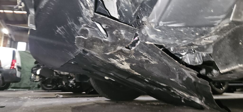 Stossstange vorne, Stossstangenträger, Wasserkühler, Klimakondensator, Motorverkleidungen und Unterbodenverkleidungen, Radhausschale VL, Kühlerlüfter, Vorderachsträger, Tagfahrlicht VL, Kühlerträger, Stütze Motorlagerung unten, Kühlerlüfter.