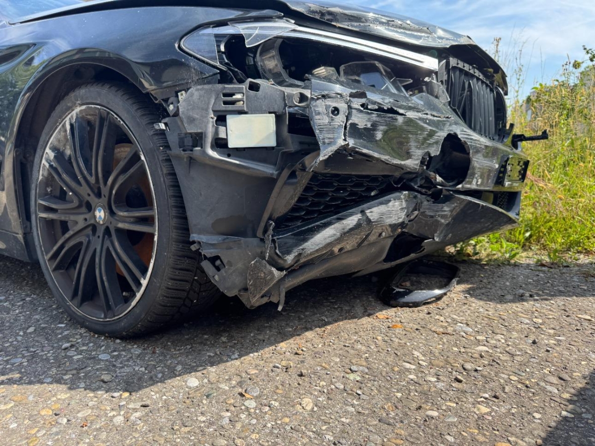 Airbag ausgelöst, Front, Frontscheibe, Gurtstraffer ausgelöst, Heck rechts, Rad hinten rechts, Rad vorne rechts, Radaufhängung hinten rechts, Radaufhängung vorne rechts