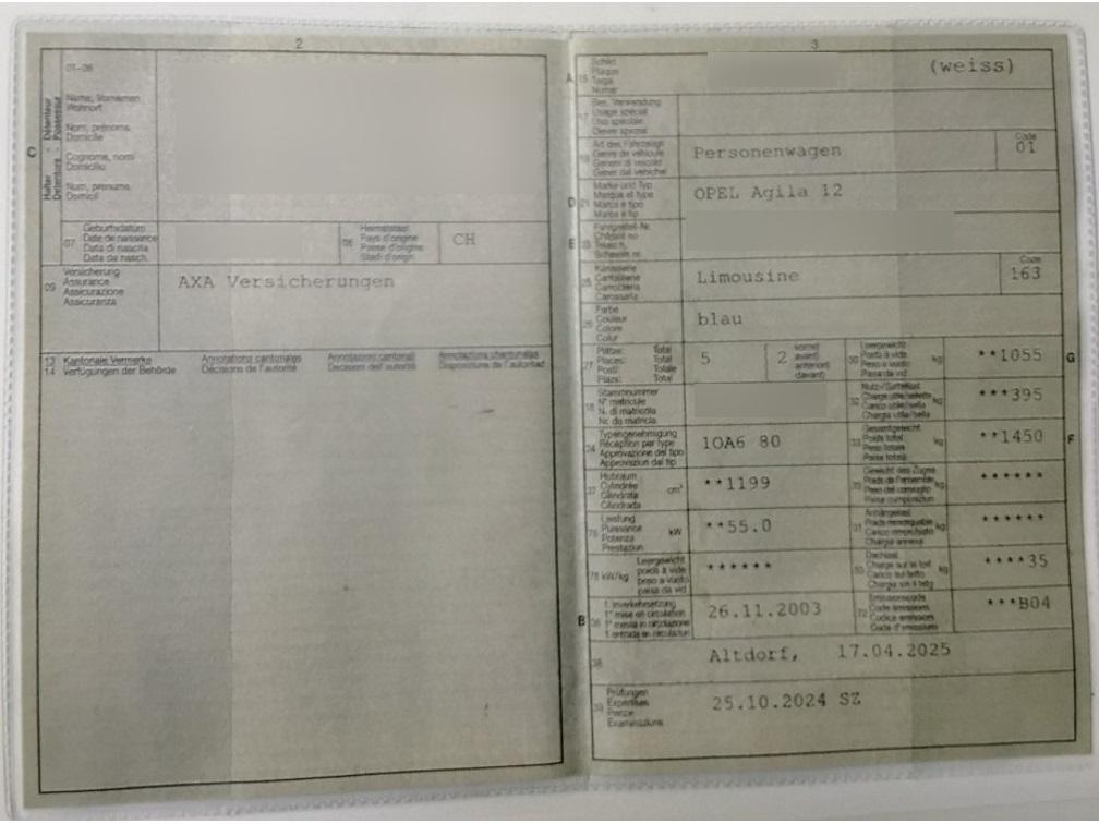 | Fahrzeugausweis | Vorhanden |