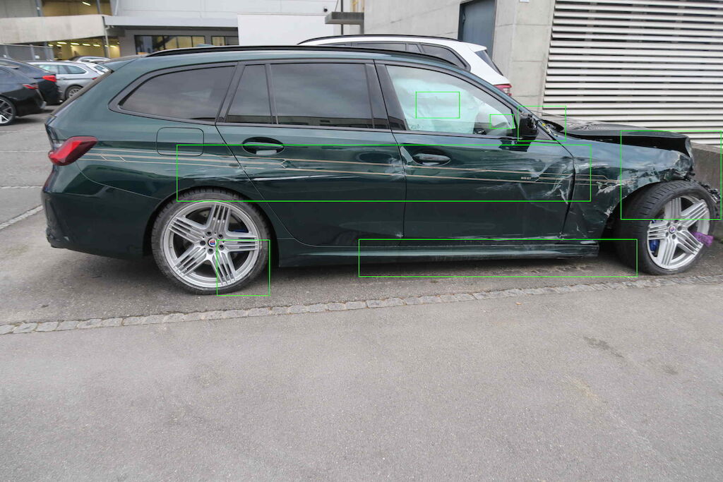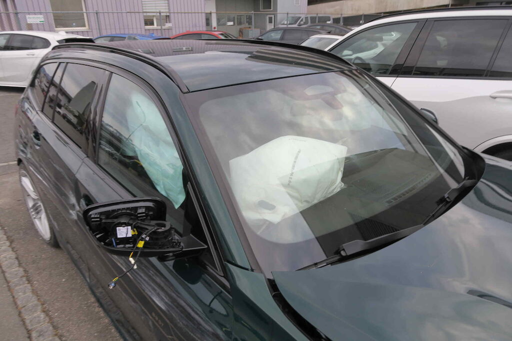 Stossstange, Beide Kotflügel, Scheinwerfer, Haube, Querträger, Motorcover, alle Kühler, Front, Scharniere Fussgängeerschutz , Lenkung, Radaufhängung vorne, Türen rechts, Seitenwand HR, Airbag, Gurten Armaturenbrett, Radhaus, Sensoren, PDC, Radar, Fussgängerschutz, Vorderachse / Hinterachse