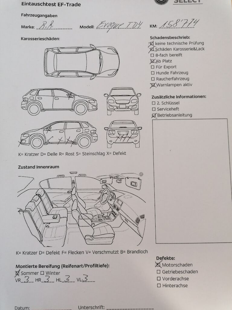 | Keine technische Prüfung (Werkstatttest) vorgenommen Diverse Schäden an Karosserie/Lack. Fahrzeug ab Platz, ohne Garantie und Aufbereitung. Es leuchten Warnlampen während des Betriebs. DPF/FAP Filter nicht kontrolliert Motorschaden-nicht Fahrbar 1 Schlüssel vorhanden |