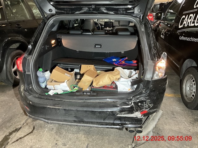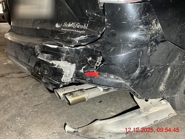 Schadensbeschreibung Beschreibung der Schäden: Stossfänger hinten, Querträger hinten, Heckdeckel, Seitenwand rechts deformiert. Heckleuchte rechts innen und Aussen gespalten. Auspuffendtopf verschoben.