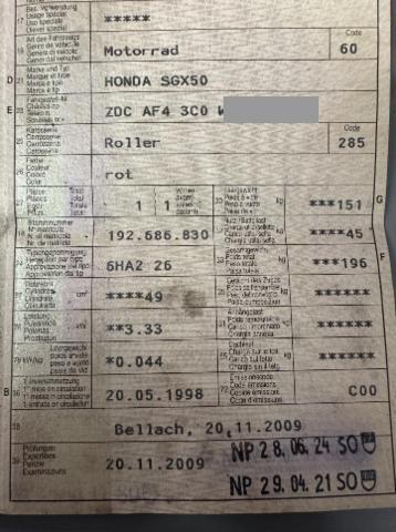 Zustand Fahrzeug muss transportiert werden (Höhe und Breite beachten). Fahrzeug ist rollbar. Schlüssel Zweirad-Kategorie |