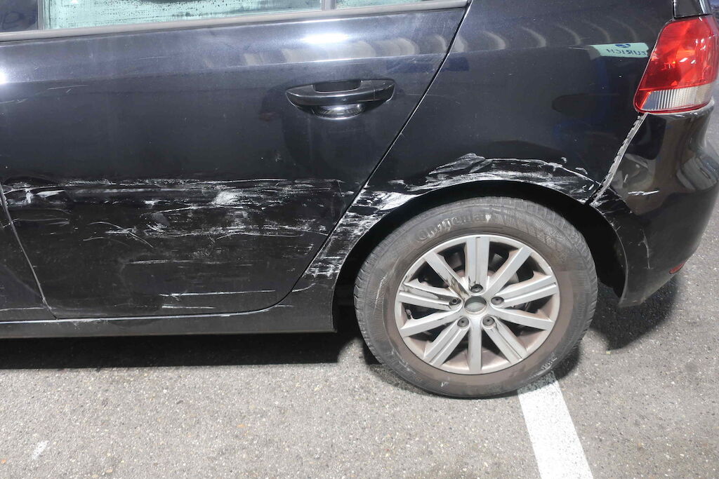 Stossfänger hinten, Seitenwand hinten links. Türe hinten links deformiert.