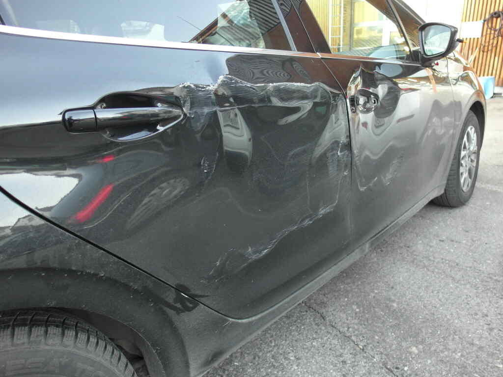 Vorschaden: Stossfänger h l leicht beschädigt, Seitenwand l zerkratzt, Kontaktspur an Stossfänger v ersichtlich