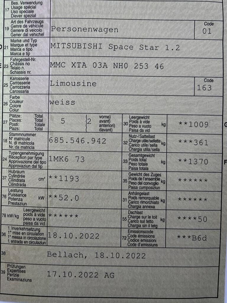 | Fahrzeug ist rollbar. Risiko Motor. Risiko Getriebe. Risiko Lenkung. Kühler ist eingedrückt. Div. Carrosserie Teile sind leicht beschädigt. Starke Verschmutzung im Innenraum. Nur ein Schlüssel vorhanden. | |