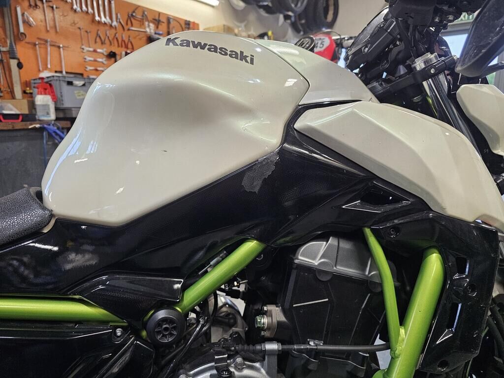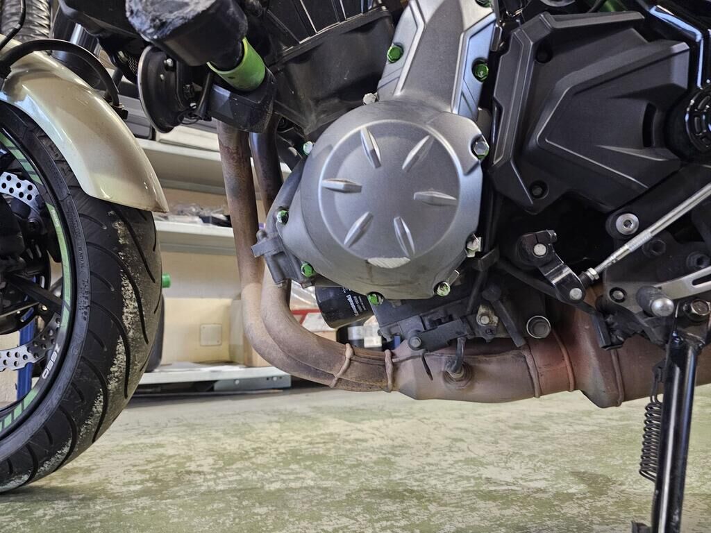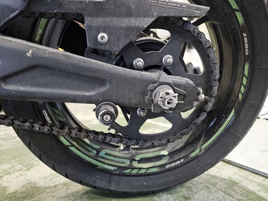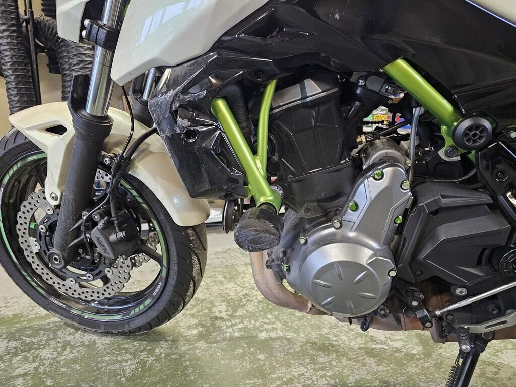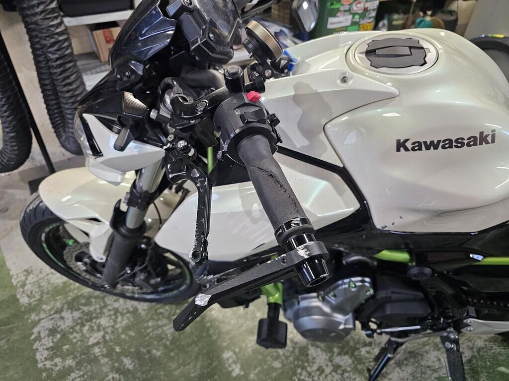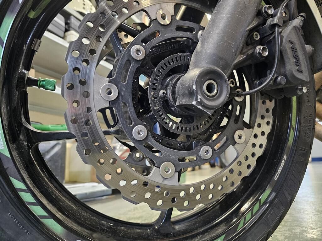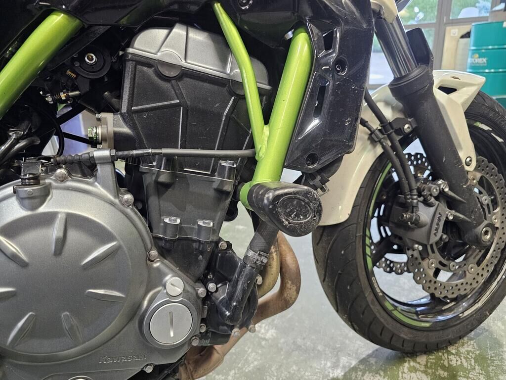 Choc latéral gauche : fourreau de fourche, clignoteur avant, levier d’embrayage, rétroviseur, commodo, poignée, guidon, écope, réservoir à carburant et cache inférieur, radiateur et déflecteur latéral, protecteur de chute, carter alternateur, béquille latérale, sélecteur vitesses, repose-pied conducteur, repose-pied passager et platine, supports béquille d’atelier, axe de roue arrière, carénage de selle.