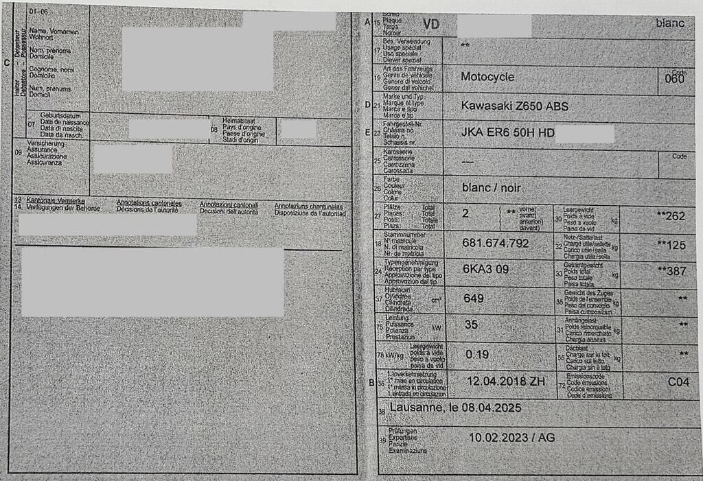 | Tipo veicolo / Costruzione / Porte | Motoveicolo / / 0 |
