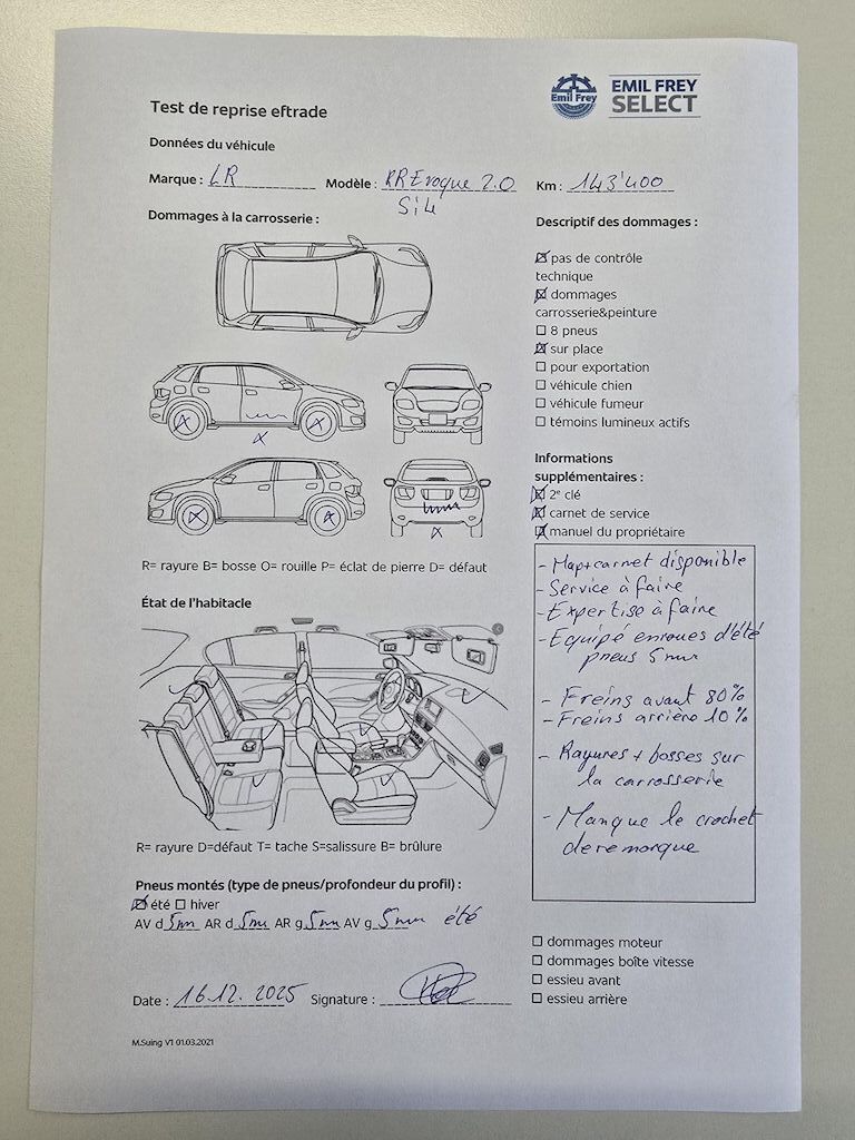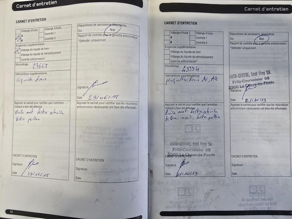 Map + carnet de service disponible Freins avant 80 % Rayures et bosses sur la carrosserie |