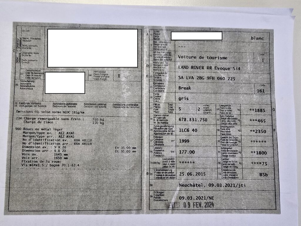 | Numero telaio | SALVA2BG9FH060225 |