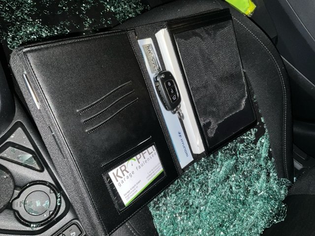 Türscheibe vorne rechts ist zerbrochen / beschädigt.
