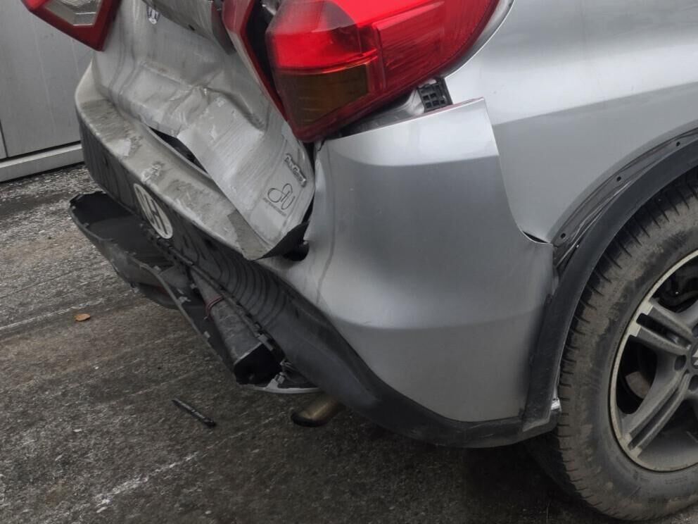 Pare-chocs arrière et feux arrières cassés.