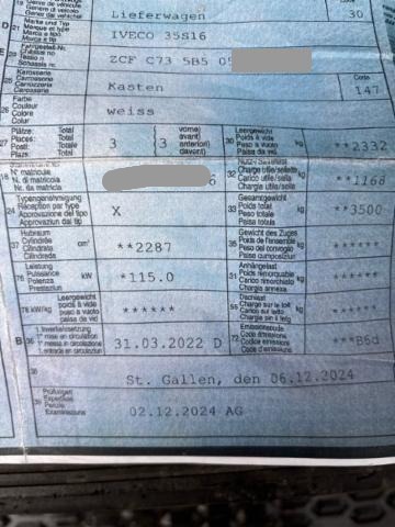 Iveco Daily 35S16CRV Kaw.3520L H1.9 2.3 HPI 156 87’025 km – SCC