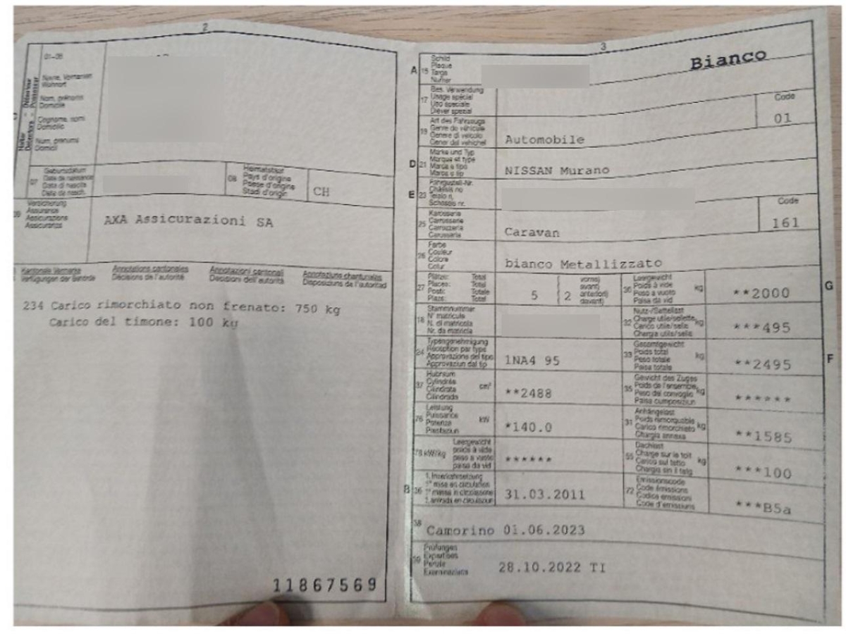 | Fahrzeugausweis | Vorhanden |
