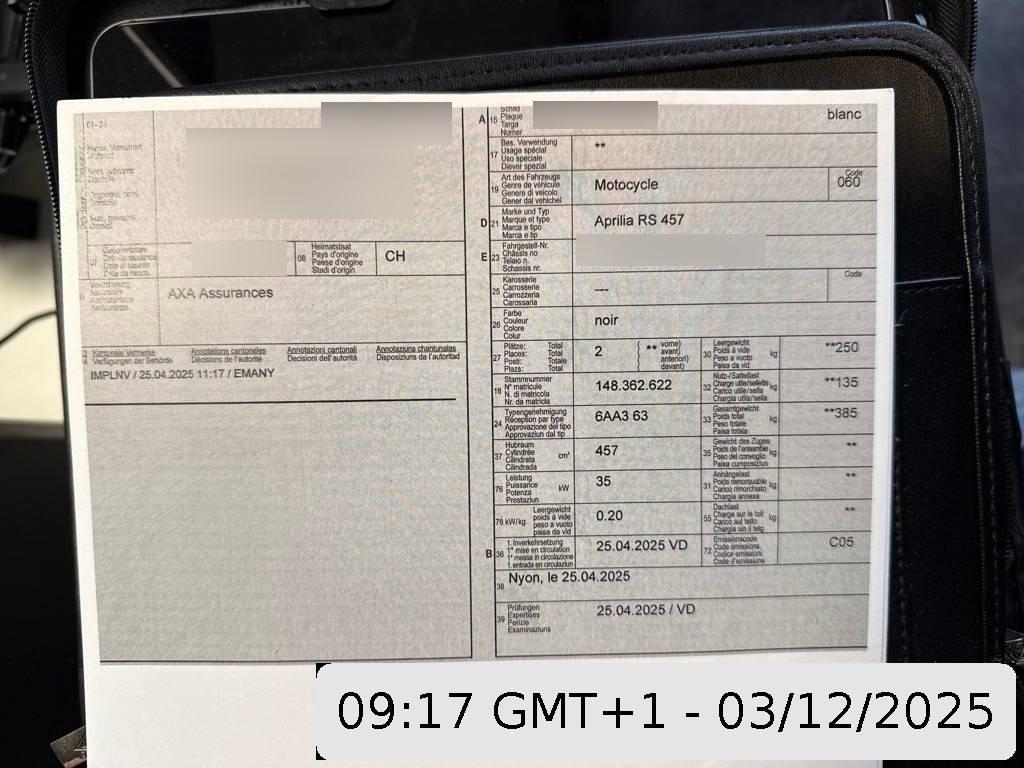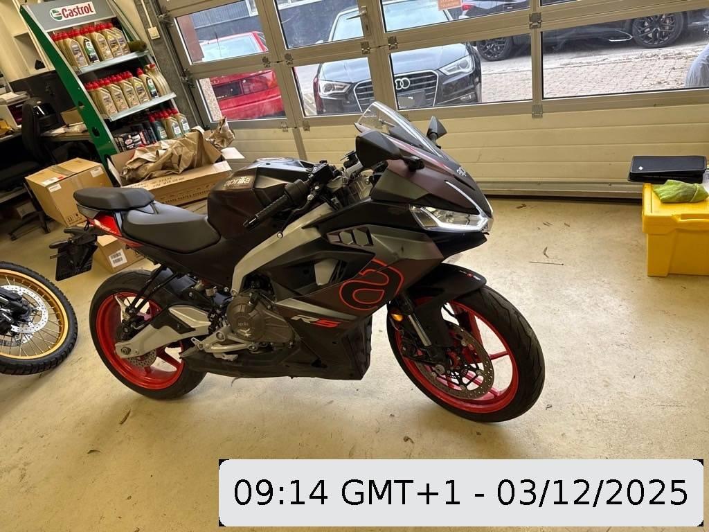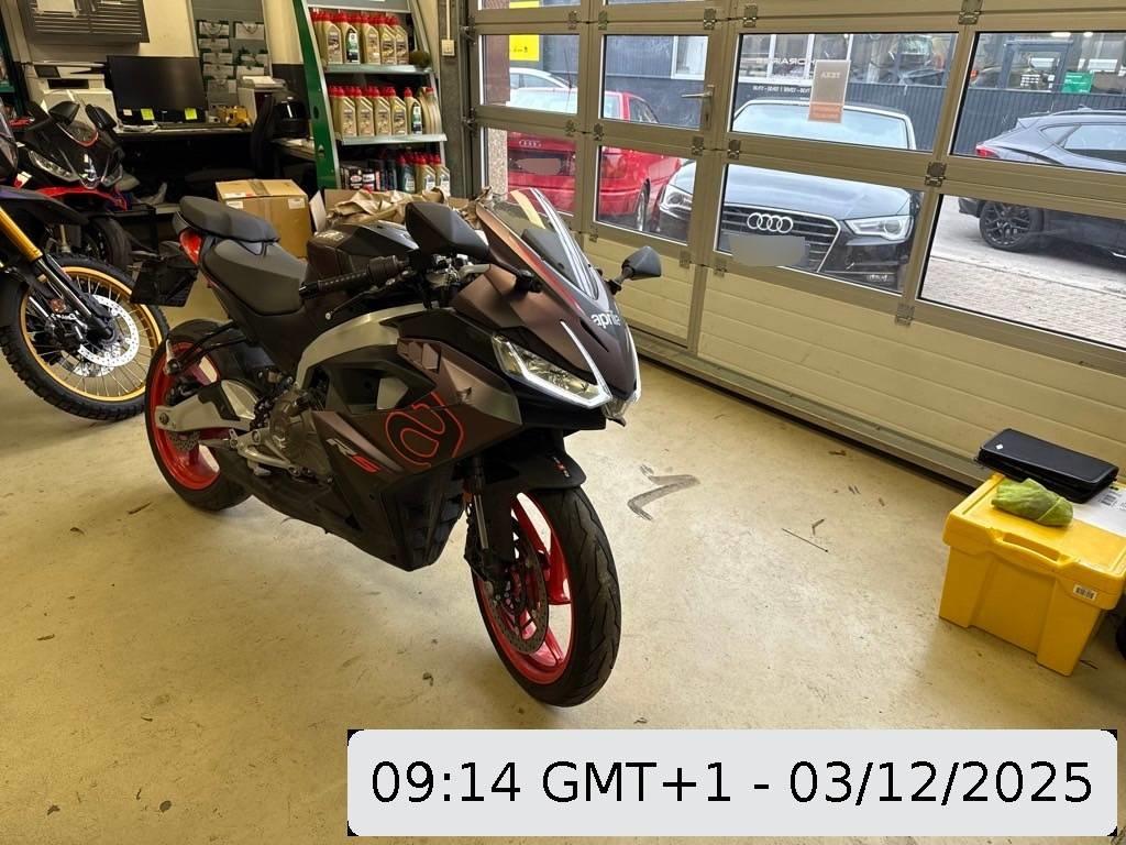 Armaturen, Auspufftopf, Aussenspiegel links, Front, Fussraster links, Getriebe, Griff links, Heck, Heckverkleidung, Kabelstrang, Kühler, Lenkanschlag, Lenkschloss, Motor, Motorgehäuse, Rad hinten, Rad vorne, Rahmen, Rücklicht, Schutzblech hinten, Schutzblech vorne, Seite links, Sitz, Verschalungen links, Verschalungen vorne, Zündschloss