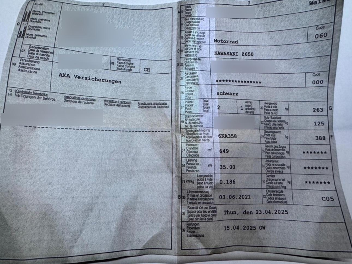 Auspufftopf, Aussenspiegel links, Aussenspiegel rechts, Diverse Anbauteile, Fussraster rechts, Getriebe, Griff rechts, Lenkschloss, Motor, Scheinwerfer