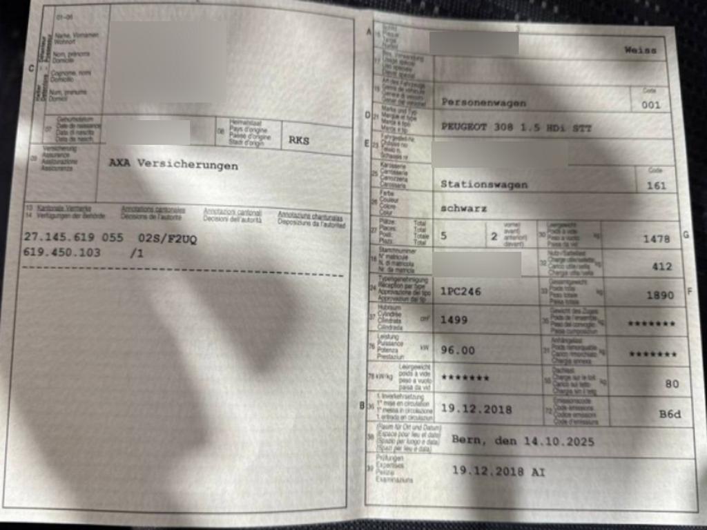 Antriebsschlupfregelung (ASR), Airbag: Airbag Beifahrer deaktivierbar, Licht: Nebelschlussleuchte, Gurtstraffer vorne, Zusätzliche 12V Steckdosen, Warnblinkautomatik bei Vollbremsung, Wegfahrsperre elektronisch, Verbandskasten, Assist: Müdigkeitserkennung, Reifenreparatur-Set (Tire Fit), Licht-/ Regensensor mit Akustikfrontscheibe, Assist: Spurhalteassistent,Fernlichtassistent,Verkehrsschilderkennung und Geschwindigkeitsempfehlung, Airbag: Seitenairbag für Fahrer und Beifahrer, Beide Make up-Spiegel beleuchtet, Licht: Halogenscheinwerfer, Parkassistent, Kühlergrilleinfassungen, Lederlenkrad, 3-Punkt-Sicherheitsgurte auf allen Plätzen, Lenkrad: Lenkradfernbedienung, Getriebe: 8-Stufen-Automat sequentiell, Toter-Winkel-Warnsystem, Kopfstützen hinten höhenverstellbar, Seitenfenster-Zierleisten verchromt, Media: USB-Anschluss, ISOFIX Kindersitzvorrichtung, Licht: Drittes Bremslicht, 4 Leichtmetallfelgen 16J mit Pneu, Vordersitze höhenverstellbar, Lenkrad: Lenkrad längs- und höhenverstellbar, Scheibenwischer vorne mit Intervall, Innenspiegel automatisch abblendbar, Rücksitzlehne geteilt abklappbar, Steckdose 12V, Rückfahrkamera mit Monitor, Beleuchtetes Handschuhfach, Steckdose 220V, Aktivkohlefilter, Warndreieck, Elektronisches Stabilitäts-Programm (ESP), Mittelarmlehne hinten, Elektrische Fensterheber vorne + hinten, Getönte Scheiben, Start/Stop-Funktion, Partikelfilter und Oxydationskatalysator, Licht: LED-Tagfahrlicht, Assist: ABS, EBD, elektronische Bremskraftverteilung, Media: 6 Lautsprecher, Radio, PEUGEOT Connect (Navigationssystem + SOS Assistance + Teleservices), Airbag: Fahrer und Beifahrer, Elektronische Parkbremse, Head-Up Display, Innenleuchten LED, Gurtkontrolle, Licht: Nebelscheinwerfer, Klima: 2-Zonen-Klimaautomatik, Licht: Abblendlichtausschaltverzögerung ‘Follow me home’, Geschwindigkeitswarner, Kartentaschen an den Rückenlehnen, Heckspoiler in Wagenfarbe, Assist: Einparkhilfe hinten, Airbag: Window-Kopfairbags, Räder: Reifendruck-Kontrollanzeige, Einparkhilfe vorne, Elektrische Kindersicherung, Bluetooth-Schnittstelle, Media: Touchscreen, Polster: Stoff-/Kunstleder-Ausstattung, Aussenspiegel rechts und links beheizt, elektrisch verstell- / und einklappbar, Assist: Notbremsassistent, Mirror Screen Funktion (Apple Carplay/Android Auto/ MirrorLink), Durchlademöglichkeit in der Rücksitzbank, Servolenkung, Kopfstützen vorne höhenverstellbar, Dachträger Alu, Einstellbare Lendenwirbelstütze für den Fahrersitz, Aussenspiegel und Türgriffe in Wagenfarbe, Heckscheiben-Wisch-/Waschanlage, Mittelarmlehne vorne mit Ablagefach, Zentralverriegelung mit Fernbedienung und automatischer Türverriegelung, Lenkrad: Multifunktionslenkrad, Pollenfilter (Staubfilter), Heckscheibenheizung, Geschwindigkeitsbegrenzer programmierbar, Lackierung: Uni-Lackierung