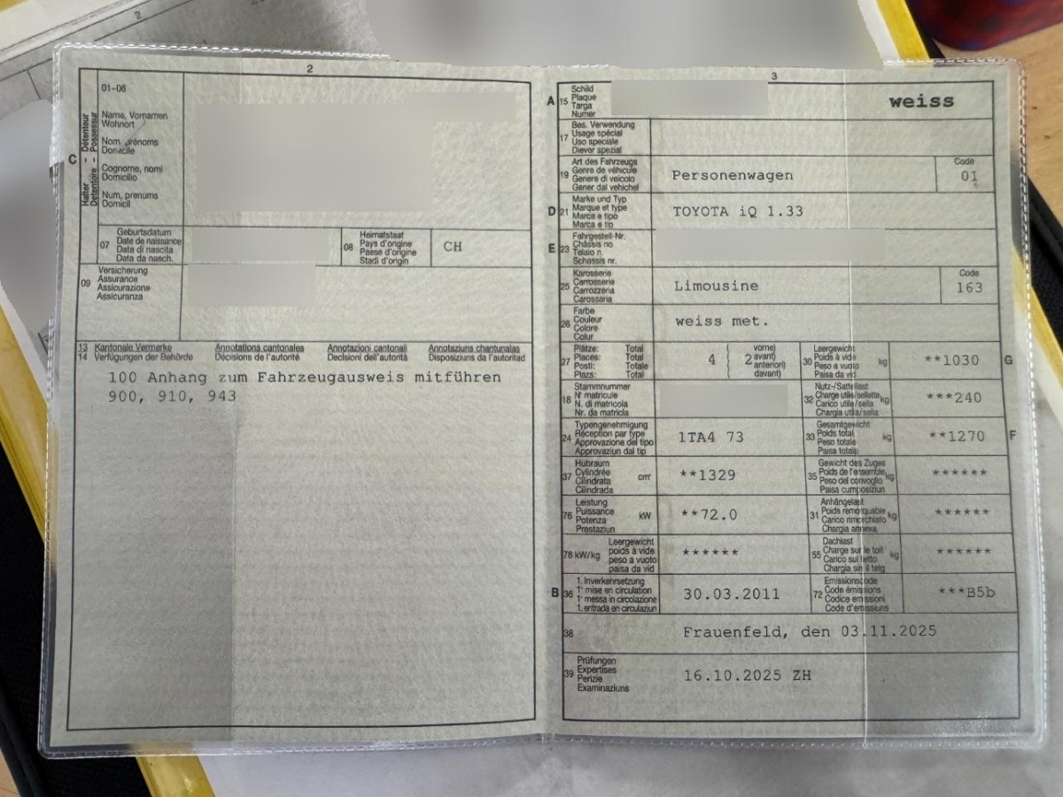Cupholder vorne, Seitenairbag Fahrerseite und Kopfairbags vorne und hinten, Gurtstraffer vorne, Lenkrad: Lederlenkrad, Pollenfilter (Staubfilter), Radio CD, MP3 und WMA, Stossstangen in Wagenfarbe, Smart Entry-/Start-System, Getönte Scheiben, Getriebe: 6-Gang-Getriebe, Blinker in Aussenspiegel, Radiofernbedienung, Media: Radiovorbereitung, Antenne, Entstörung und 6 LS, Window-Kopfairbags für Fahrer, Beifahrer und Fondraumpassagiere, Sitze: Vordersitze heizbar, Heckscheiben-Wisch-/Waschanlage, Heckscheibenheizung, Servolenkung, Klima: Klimatisierungsautomatik, Sitze mit Schleudertrauma-Schutzsystem, Innenspiegel automatisch abblendbar, Digital Uhr, Bremsassistent (BAS), 3-Punkt-Sicherheitsgurte auf allen Plätzen, Lackierung: Uni-Lackierung, Airbag: Airbag Beifahrer deaktivierbar, Aussenspiegel rechts und links beheizt, elektrisch verstell- / und einklappbar, Schalthebelknauf in Leder, Scheibenwischer vorne mit Intervall, Seitenaufprall-Schutzsystem, Airbag: Seitenairbag für Fahrer und Beifahrer, Kopfairbags hinten (Curtain Airbag), Lenkrad verstellbar, Gurtwarneinrichtung für Fahrer- und Beifahrersitz, Licht: Nebelschlussleuchte, Aussenspiegel in Wagenfarbe, Aussentemperaturanzeige, Katalysator geregelt, Sitze: Rücksitzlehne geteilt abklappbar, Zentralverriegelung mit Fernbedienung, Kopfstützen hinten, Bottleholder, Doppelscheinwerfer, Regen- und Dämmerungssensor, Räder: 4 Leichtmetallfelgen 16J mit Pneu, Info-Display, Elektrische Fensterheber vorne, Licht: Nebelscheinwerfer, Airbag: Knie-Airbag für Fahrer, Sitze: Fahrersitz höhenverstellbar, Airbag: Airbag Fahrer und Beifahrer, Licht: Drittes Bremslicht, Stabilitäts- und Traktionskontrolle (VSC und TRC), Wegfahrsperre elektronisch, Polster: Stoff-Ausstattung, Laderaumabdeckung, Antiblockiersystem (ABS), Lenkrad: Lenkrad höhenverstellbar, ISOFIX Kindersitzvorrichtung