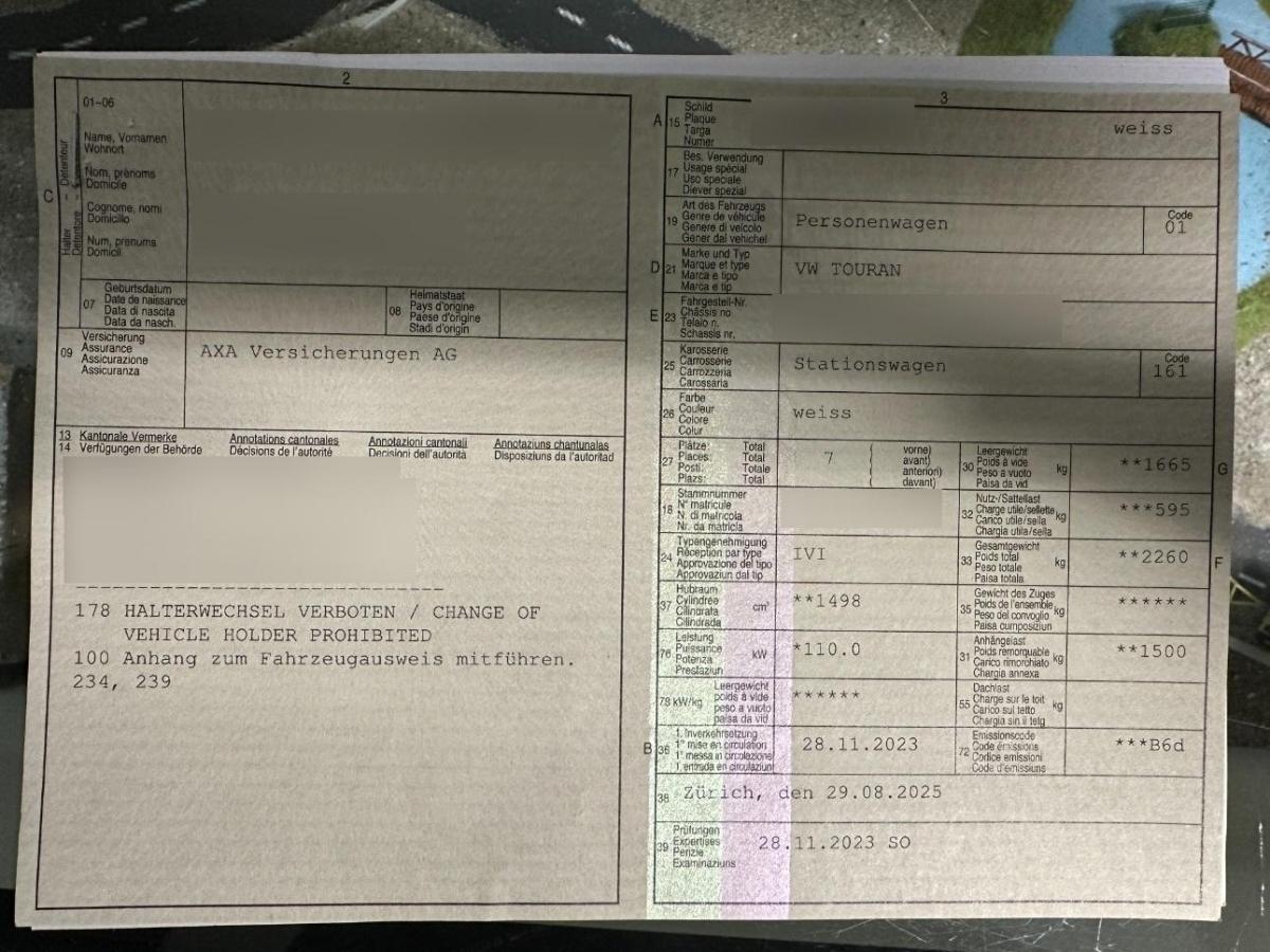 | Fahrzeugausweis | Vorhanden |