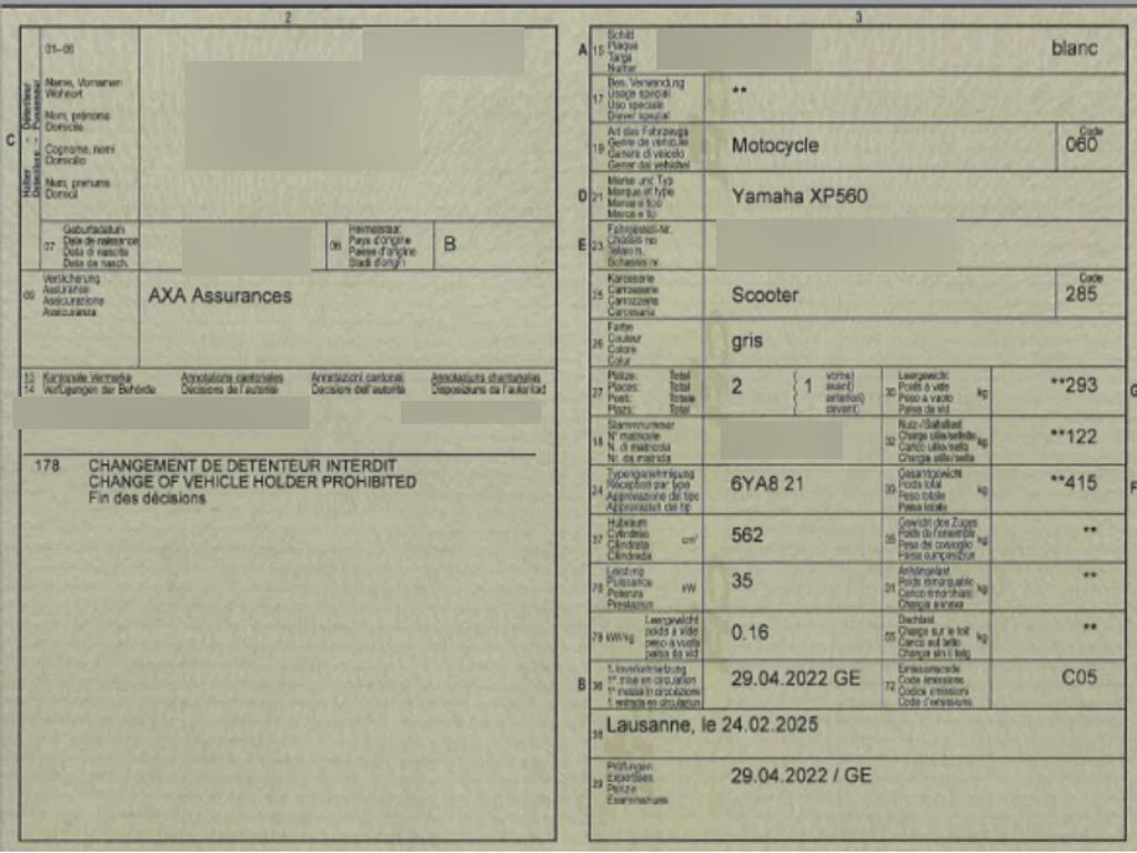| Fahrzeugausweis | Vorhanden |