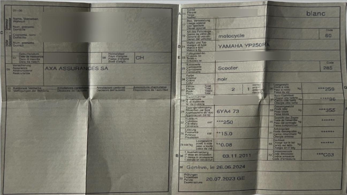 | Fahrzeugausweis | Vorhanden |