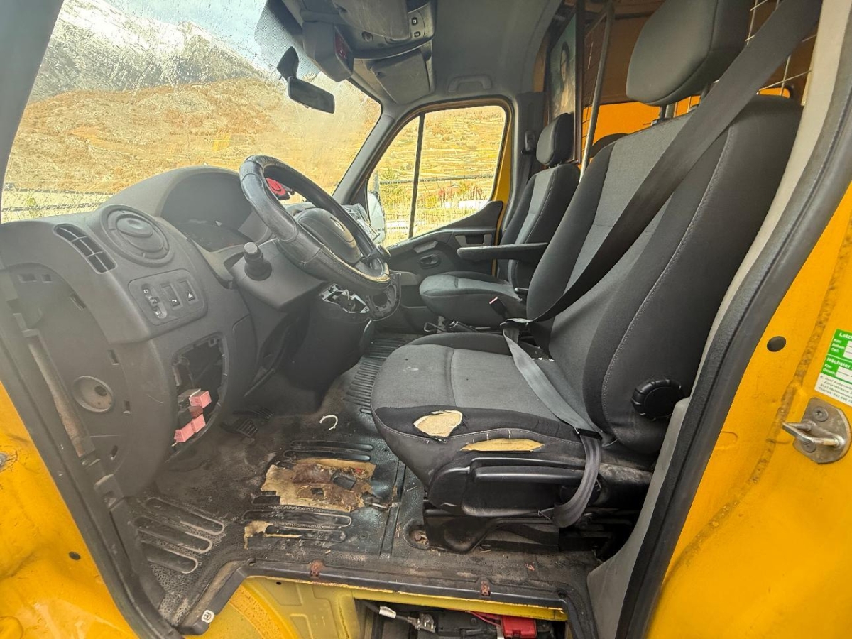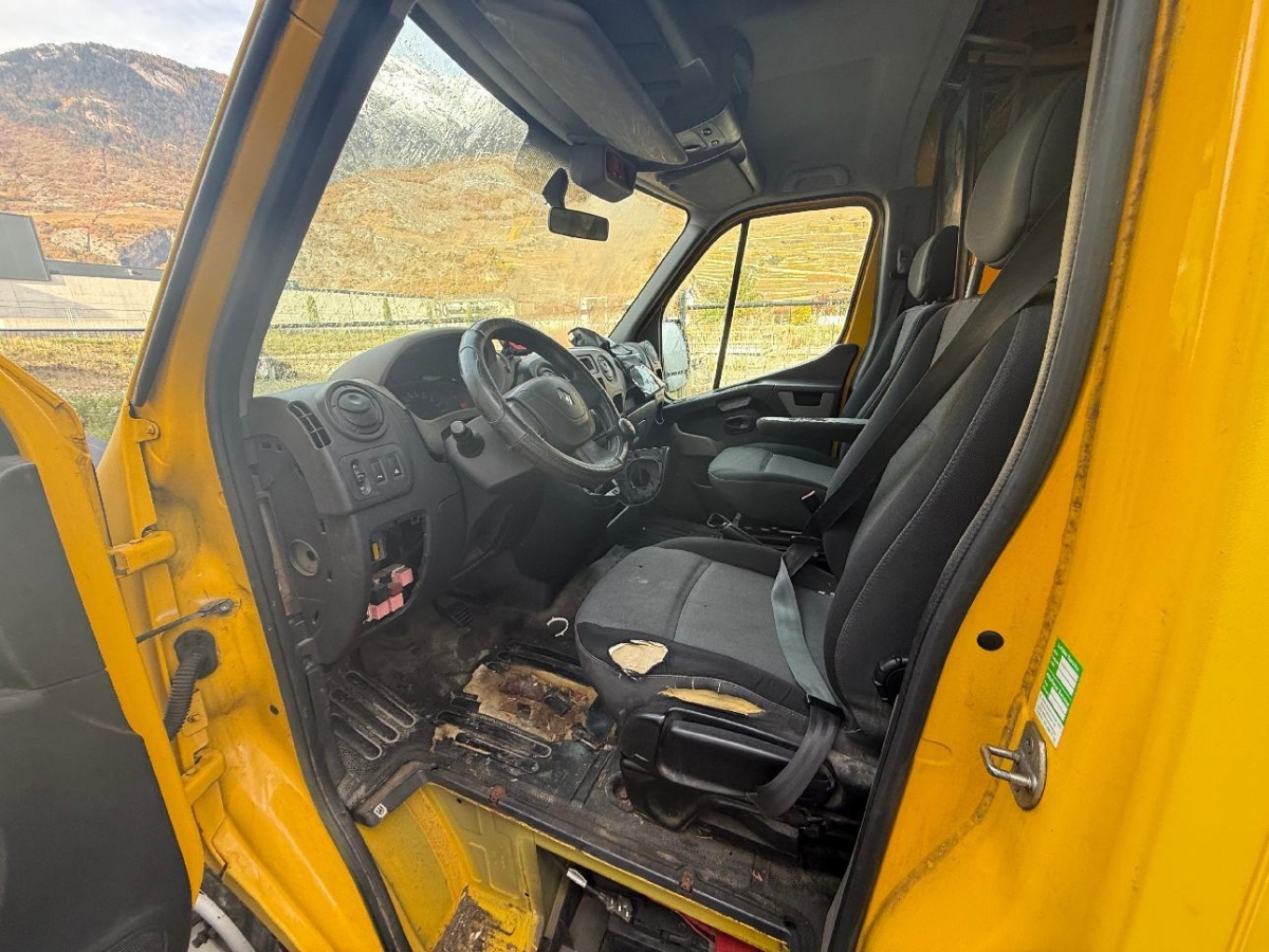 Ablagefach im Dachbereich, Lenkrad: Servolenkung, Leseleuchten vorne, Gurtwarneinrichtung für Fahrersitz, Elektrische Fensterheber vorne, Drehzahlmesser, Gurtstraffer vorne, Zentralverriegelung mit Fernbedienung, Antiblockiersystem (ABS), Kreuzstütze für Fahrersitz verstellbar, Handschuhfach, Scheibenwischer vorne mit Intervall, Getriebe: 6-Gang-Getriebe, Lichtwarnsummer, Polster: Stoff-Ausstattung, Laderaumbeleuchtung, Schiebetüre rechts, Sitze: Beifahrer Doppelsitzbank, Radiovorbereitung, Dachantenne und, Begleitlicht-Funktion (Show me home), Getönte Scheiben, Licht: Positionsleuchten seitlich, Partikelfilter und Oxydationskatalysator, Renault Garantie: 3 Jahre oder 100’000 km (ab 1. Inv.), Airbag: Fahrerairbag, Pollenfilter (Staubfilter), Laderaumtrennwand mit Fenster, Bremsassistent (BAS), Aussenspiegel rechts und links elektrisch verstellbar, Türen: Flügeltüren hinten 180°, verblecht, Wegfahrsperre elektronisch, Befestigungsösen im Laderaum 8 Stk. bei L1, 10 bei L2, Leuchtweitenregulierung von innen, Stahlräder 16J, Lackierung: Uni-Lackierung, Ablagefach unter dem Beifahrersitz, Sitze: Beifahrersitz-Rückenlehne umklappbar, Armlehne für Fahrersitz