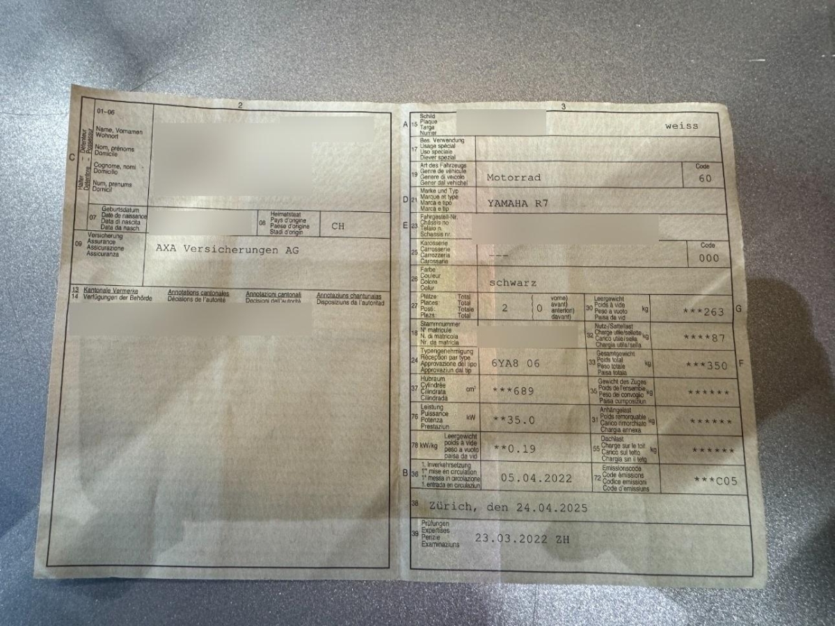 | Fahrzeugausweis | Vorhanden |