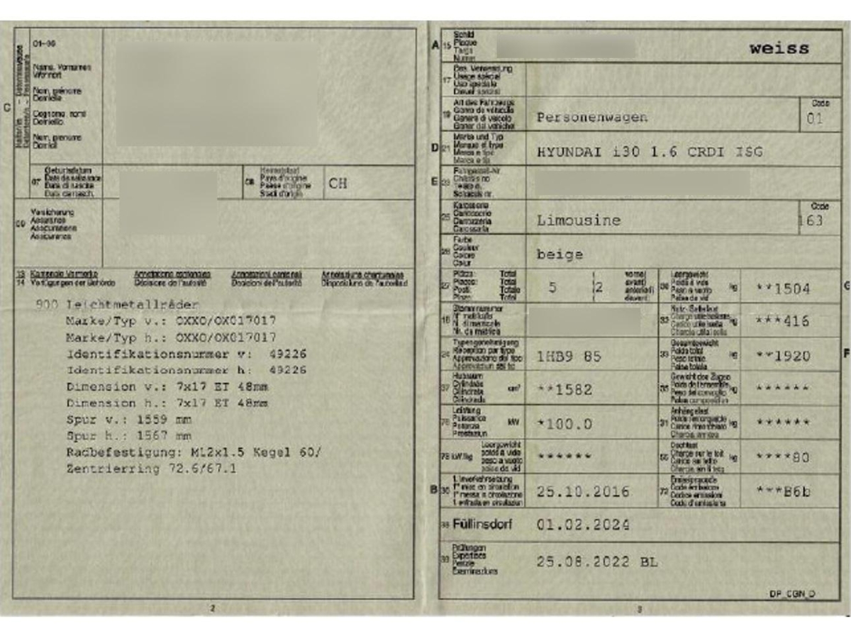 Media: 6 Lautsprecher, Getönte Scheiben, Aussenspiegel elektrisch einklappbar, Radio/CD-Player mit MP3, Leseleuchten, Nebelscheinwerfer, Sitze: Rücksitze geteilt abklappbar, Bremsassistent (BAS), Smart Key, Licht: LED Heckleuchten, Lenkrad: Audiofernbedienung am Lenkrad, Bi-Xenon-Scheinwerfer mit automatischer Höheneinstellung, Flex Steer, Lackierung: Uni-Lackierung, Zentralverriegelung mit Fernbedienung, Media: Bluetooth Freisprecheinrichtung, Assist: Elektronische Parkbremse, Scheibenwischer-Enteiser, Supervision Cluster, Bordcomputer, Laderaumabdeckung, ABS, EBD elektronische Bremskraftverteilung, 4 Leichtmetallfelgen 16J mit Pneu, Blinker in Aussenspiegel, Kühlergrill verchromt, Heckscheiben-Wisch-/Waschanlage, Licht: Drittes Bremslicht, Welcome-Beleuchtung, Türgriffe aussen verchromt, Gurtkontrolle, Wegfahrsperre elektronisch, USB+AUX-Anschluss, Leder-Ausstattung, TPMS Reifendrucküberwachungssystem, Airbag: Knie-Airbag für Fahrer, Dynamisches Kurvenlicht, ISOFIX Kindersitzvorrichtung, Lenkrad: Lenkrad längs- und höhenverstellbar, Heckscheibenheizung, Elektronisches Stabilitäts-Programm (ESP), Fahrersitz mit Lordosenstütze, Partikelfilter und Oxydationskatalysator, Elektrische Fensterheber vorne u. hinten, Aktive Kopfstützen, Airbag: Airbag Fahrer und Beifahrer, Lenkrad: Lederlenkrad, Fahrersitz höhenverstellbar, Aussenspiegel in Wagenfarbe, VSM (Vehicle Stability Management), Licht: Nebelschlussleuchte, Airbag: Airbag Beifahrer deaktivierbar, Höhenverstellbare Gurten vorne, Aussentemperaturanzeige, Beifahrersitz höhenverstellbar, Airbag: Seitenairbag für Fahrer und Beifahrer, LED-Tagfahrlicht, Window-Kopfairbags, Diebstahlwarnanlage, Mittelarmlehne vorne, Fenstereinfassung in Chrom, Assist: Tempomat mit Geschwindigkeitsbegrenzer, Start-/Stop-Knopf, Assist: Berganfahrhilfe (Hill Holder), 3-Punkt-Sicherheitsgurte auf allen Plätzen, Pollenfilter (Staubfilter), Innenspiegel automatisch abblendbar, Start-/Stopp-Automatik, Abblendlichtausschaltverzögerung ‘Follow me home’, Ablagefach im Kofferraumboden, Sonnenschutzverglasung, Sitze: Sitzbelüftung vorne, Sitze: Fahrersitz elektrisch verstellbar, Gepäcknetz(e), Getriebe: 6-Gang-Getriebe, Servolenkung, Aussenspiegel rechts und links beheizbar und elektrisch verstellbar, Gangempfehlung, Mittelarmlehne hinten