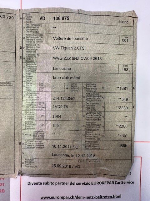 | Numero telaio | WVGZZZ5NZCW032618 |