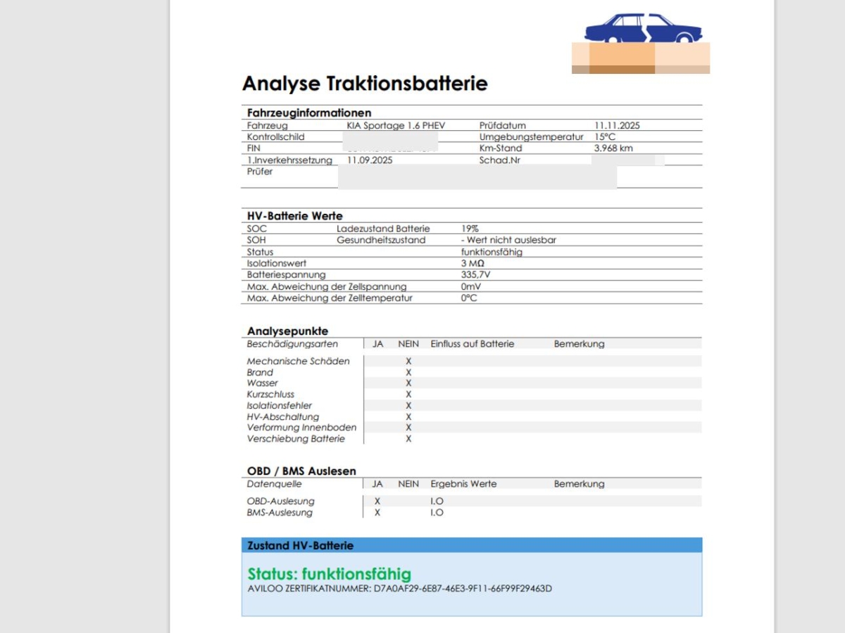 Die Hochvoltbatterie wurde geprüft und ist funktionsfähig.
