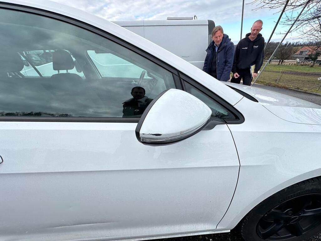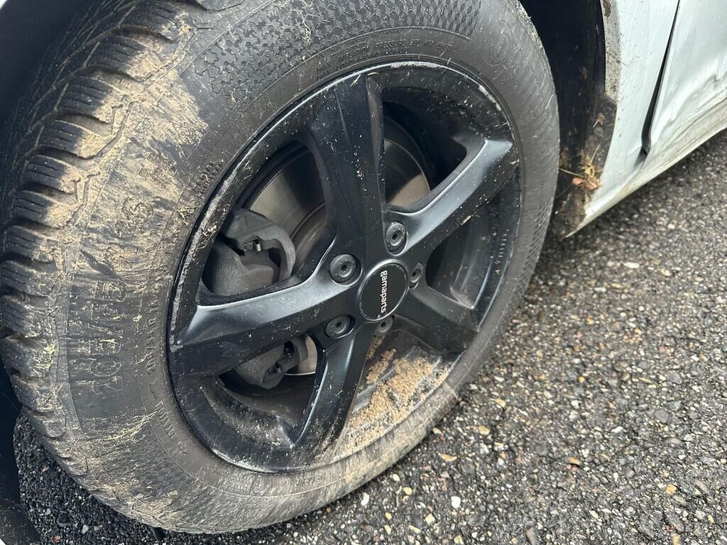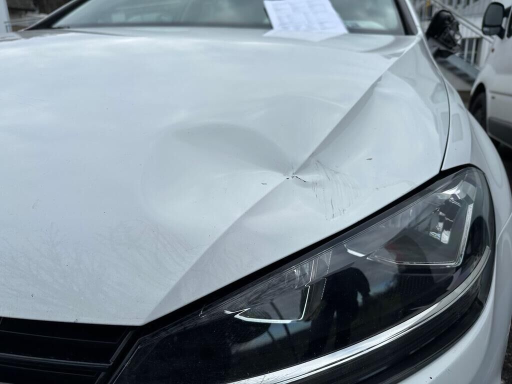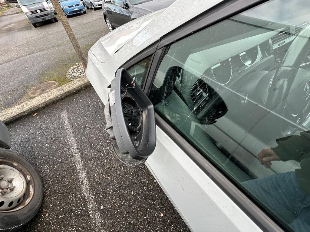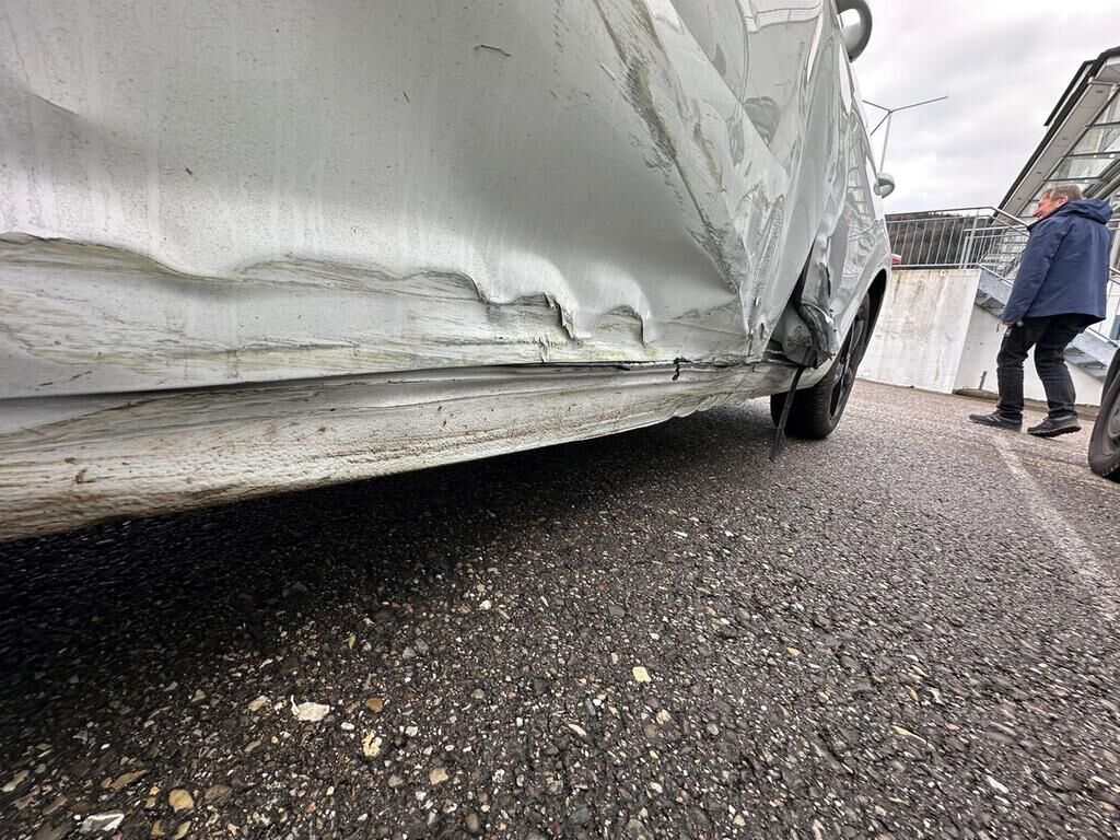 Anprall mit Deformation der Stossstange, Motorhaube, Felge, beide Türen und dem Schweller. Fahrertür lässt sich nicht öffnen.
