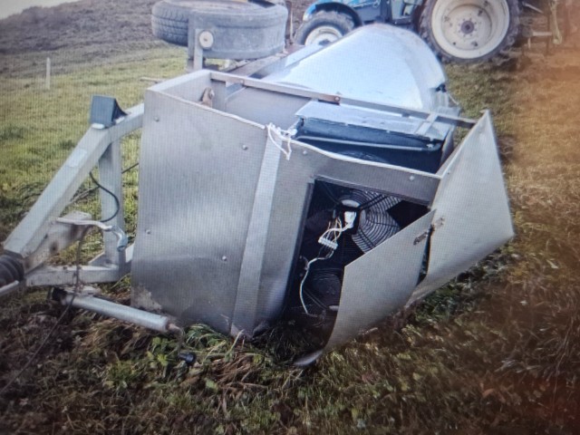 Milchtank eingedrückt, Steuerung Kühlung defekt, Kühlkompressor abgerissen. Risiko Kühlleitungen.