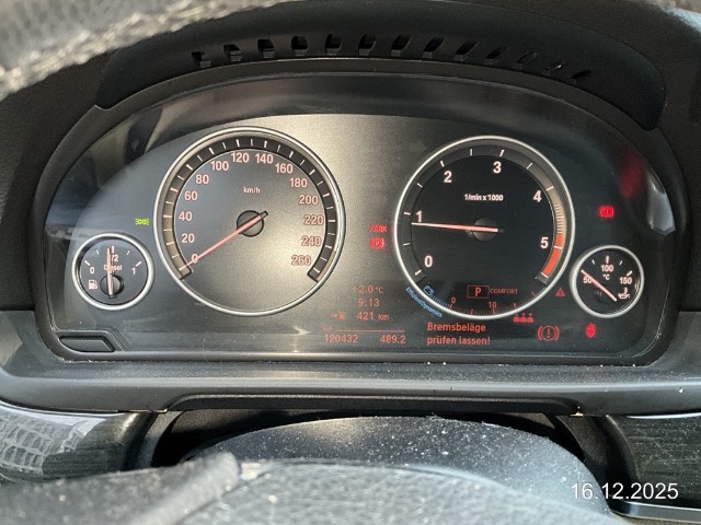 12-Volt-Steckdose hinten, 12-Volt-Steckdose vorne, 2-Zonen-Klimaautomatik, Abschliessbare Radschrauben, Airbag: Airbag Fahrer und Beifahrer, Airbag: Seitenairbag für Fahrer und Beifahrer, Aktive Kopfstützen, Antiblockiersystem (ABS), Assist: Anfahrassistent, Assist: Crash-Sensor, Assist: Tempomat mit Bremsfunktion, Aussenspiegel rechts und links beheizt und elektrisch verstellbar, asphärisch gewölbtes Spiegelglas, Aussentemperaturanzeige, Ausstiegsleuchten in den Türen vorn, Aux-In Anschluss, Befestigungsösen im Laderaum, Beide Make up-Spiegel beleuchtet, Bordcomputer, Bremsassistent (BAS), Bremsbelag-Verschleissanzeige, Bremsenergie-Rückgewinnung, Check-Control-System, Chrom-Line Exterieur, Cupholder vorne und hinten, Drehzahlmesser, Drittes Bremslicht, Dynamische Bremsleuchten, Dynamische Stabilitätskontrolle (DSC), Einstiegsschienen, Elektrische Fensterheber vorne + hinten, Elektronische Parkbremse, Frontscheibe Verbundglas, Getriebe: 8-Stufen-Automat Steptronic, Gurtstraffer vorne, ISOFIX Kindersitzvorrichtung, Info-Display, Interieurleisten in schwarz, Kartentaschen an den Rückenlehnen, Lackierung: Uni-Lackierung, Leder-Multifunktionslenkrad im 3-Speichen-Design, Leichtmetallräder V-Speiche 236, 17J, Lenkrad: Lenkrad längs- und höhenverstellbar, Leseleuchten vorne, Leuchtweitenregulierung von innen, Licht: Nebelschlussleuchte, Lichtwarnsummer, Mittelarmlehne hinten, Nebelscheinwerfer, Nichtraucherausführung, Partikelfilter und Oxydationskatalysator, Radio BMW Professional, Radiovorbereitung, Antenne, Entstörung und 6 LS, Räder: Reifendruck-Kontrollanzeige, Scheibenwaschdüsen beheizt, Scheibenwischer vorne mit Regensensor und automatischem Einschalten der Abblendlichter, Servotronic, Sitzbelegungserkennung für Beifahrersitz, Sonnenschutzverglasung, Start-/Stop-Knopf, Stoff-Ausstattung Diagonal, Stossstangen, Aussenspiegel und Türgriff in Wagenfarbe, Umgebungsausleuchtung (Follow me home), Veloursfussmatten, Vordersitze teilelektrisch (Höhen-, und Lehnenverstellung), Wegfahrsperre elektronisch, Window-Kopfairbags, Zentralverriegelung mit Fernbedienung, iDrive-System