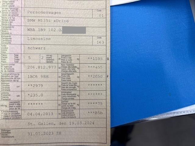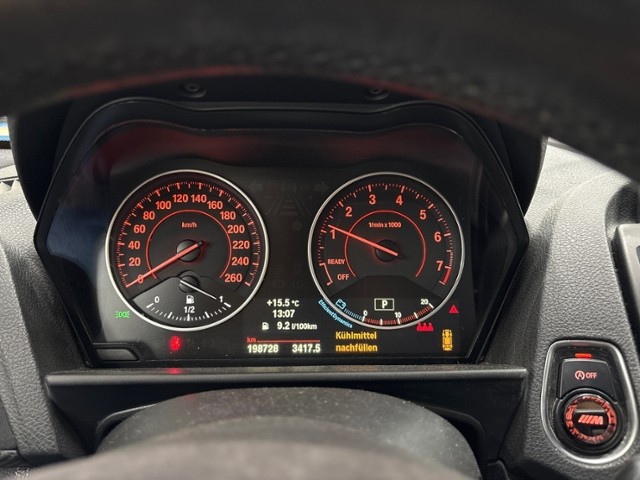 Serienaustattung Klimaautomatik inkl. Mikrofilter Fahrer und Beifahrer-Airbag Seitenairbag für Fahrer und Beifahrer Radio BMW Professional Elektrische Fensterheber Aussenspiegel elektrisch verstellbar Dynamische Stabilitäts-Control DSC Pack M Aerodynamik Hochglanz Shadow-Line Cornering Brake Control CBC M-Lederlenkrad Sportsitze für Fahrer und Beifahrer M-Leichtmetallräder Bordcomputer Uni-Lackierung Multifunktions-Lenkrad Reifenpannen-Anzeige Kopfairbags vorne + hinten Dynamische Traktions-Control DTC Armauflage vorn verschiebbar Lenksäule mit Höhen- und Längseinstellung Digital audio DAB-Tuner ABS Antiblockiersystem inklusive Bremsassistent Radschraubensicherung Auto Start Stopp Funktion BIN Dachhimmel anthrazit Rücksitzlehne geteilt umklappbar 40/20/40 Sportlenkung variabel Details siehe gültige Preisliste des Importeurs Interieurleisten Aluminium Hexagon Keine Gewähr auf die Angaben der Serienausstattungen M Sportbremse Akzentleisten Estoril blau matt Stoff Hexagon/ Alcantara Pack Swiss-Premium Sonderausstattung |