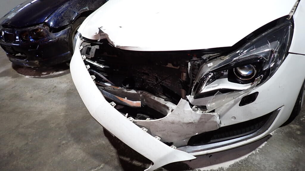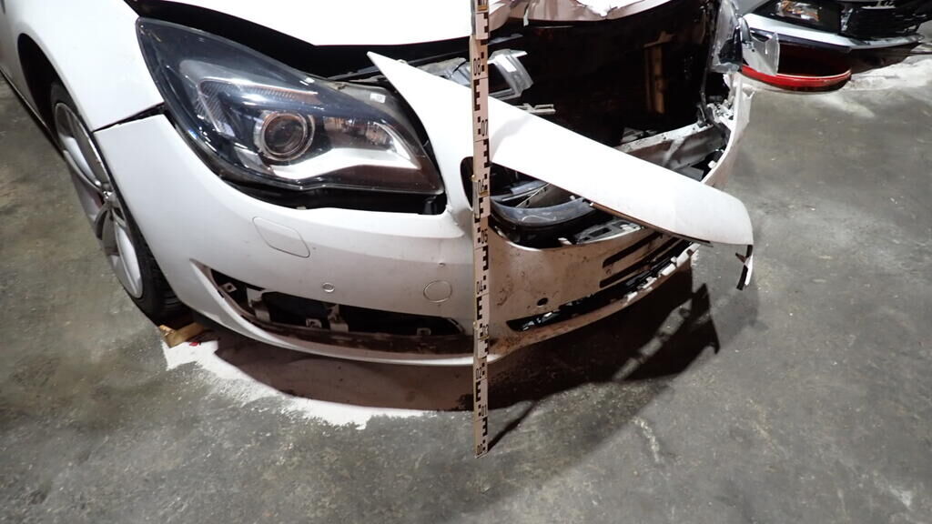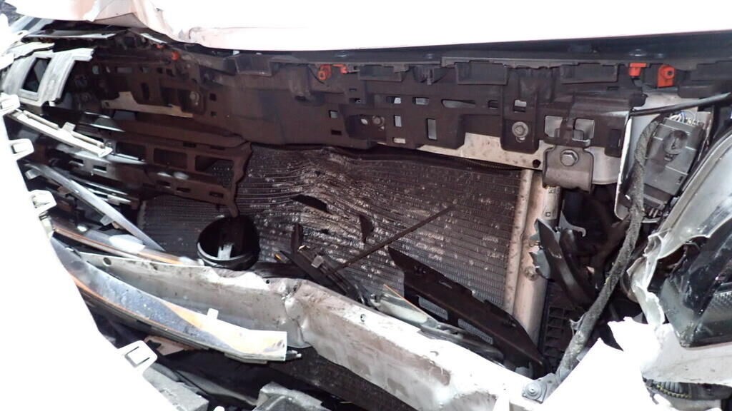 Capot, charnières, aile avant gauche,, phares avant, pare-chocs avant, calandre, radiateurs, condenseur, ventilateur, capteurs PDC, renfort, absorbeur, guides, airbags avant, ceintures avant, tableau de bord et pare-brise avant, boitiers