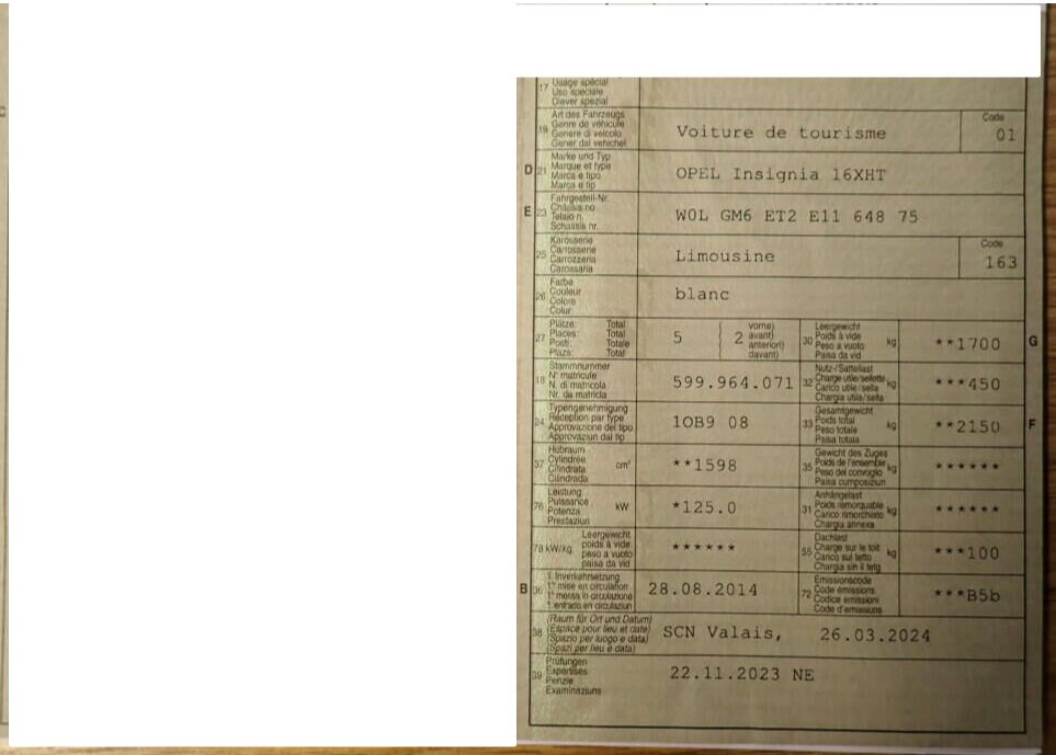 | Numero telaio | W0LGM6ET2E1164875 |