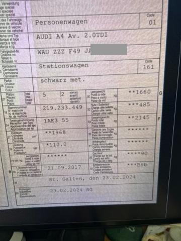 Serienaustattung Deaktivierung Beifahrerairbag/ Isofix Kindersitzverank. V+H Aussenspiegel elektrisch verstellbar und heizbar Airbag Fahrer und Beifahrerseite Seitenairbag Fahrer und Beifahrerseite Servotronic Seitliches Kopfairbagsystem SIDEGUARD Radschrauben mit Diebstahlsicherung Dachreling schwarz Reifendruck-Kontrollsystem RDK Xenon-Plus Scheinwerfer ABS und EBV Elektr. Bremskraftverteilung ESP Elektronisches Stabilitätsprogramm Netztrennwand Dieselpartikelfilter DPF Radioempfang digital DAB Klimaautomat Fahrerinformationssystem Fussmatten vorn und hinten Multifunktions-Ledersportlenkrad Rücksitzlehne geteilt umklappbar Audi drive select (Fahrzeugcharakteristik) Gepäckraumklappe elektrisch öffnend und schliessend Bluetooth Schnittstelle Stop + Start System Keine Gewähr auf die Angaben der Serienausstattungen Gepäckraumabdeckung elektrisch MMI Radio plus Sonderausstattung |