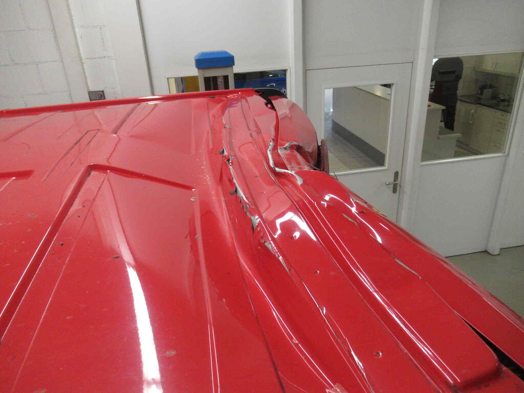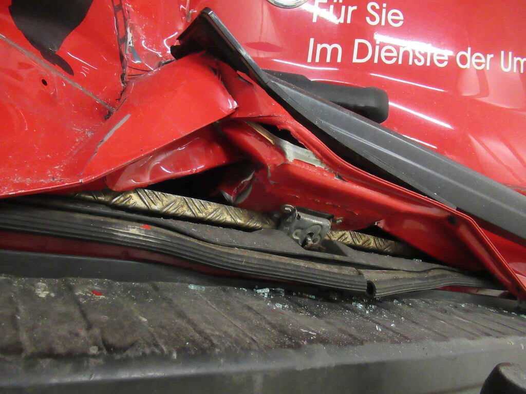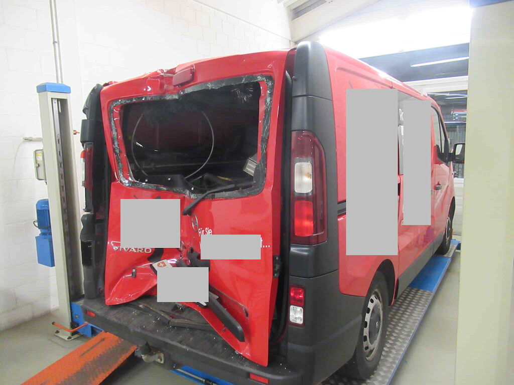 Heckschaden – Heckklappe, Heckblech, Stossfänger, Heckleuchte links, Hecktüre eingedrückt, Seitenwand links eingedrückt, Dach eingedrückt und gestaucht/Verzogen