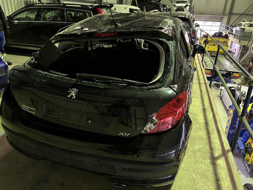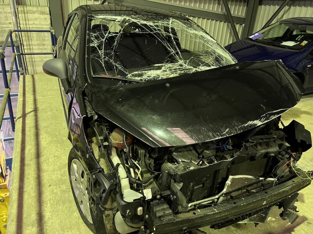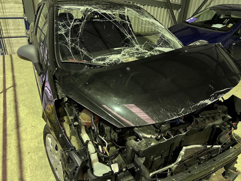 Dabei wurde das Fahrzeug durch einen Uberschlag rundum beschädigt.