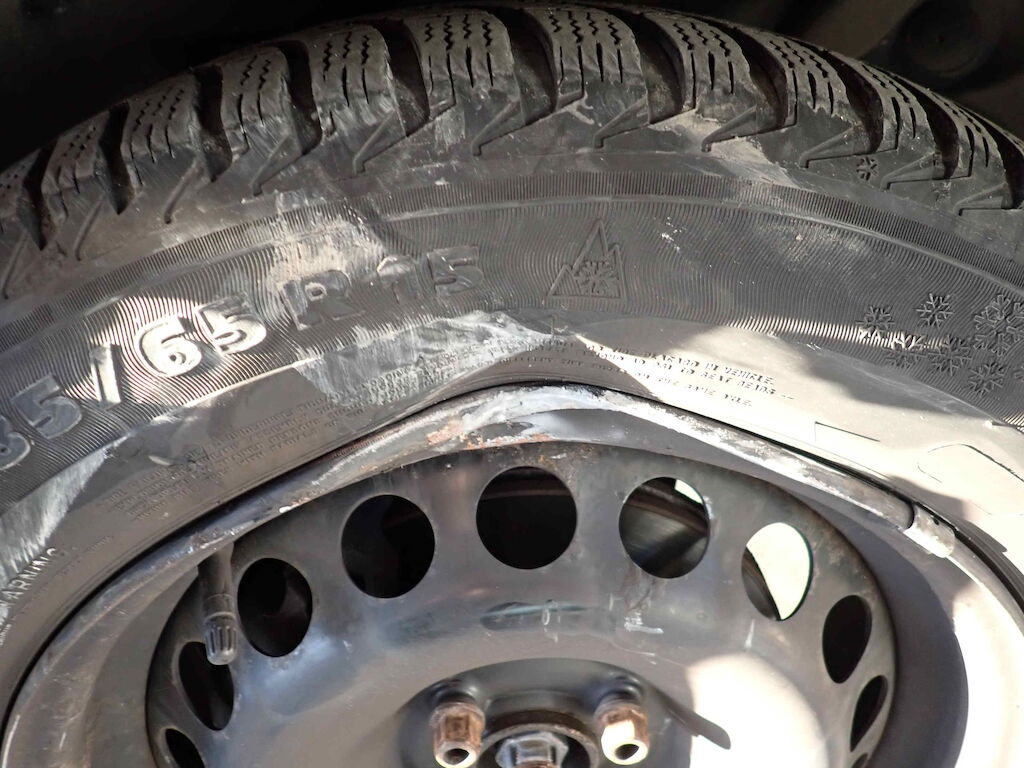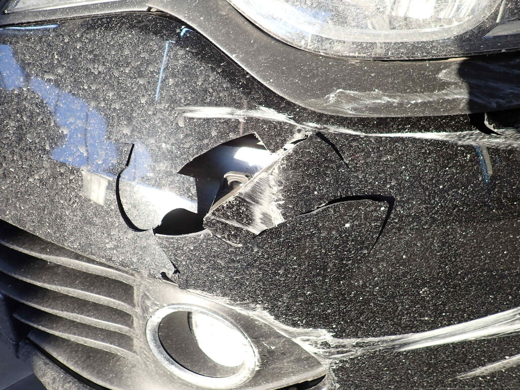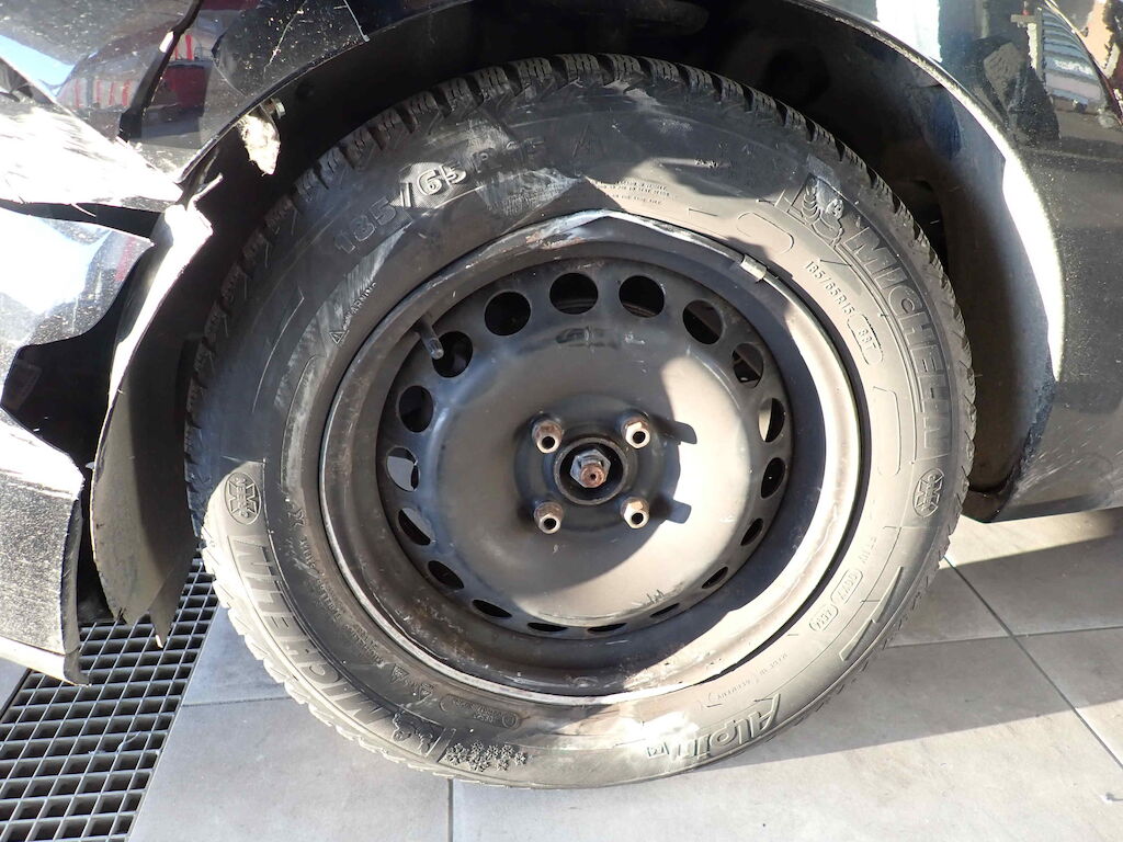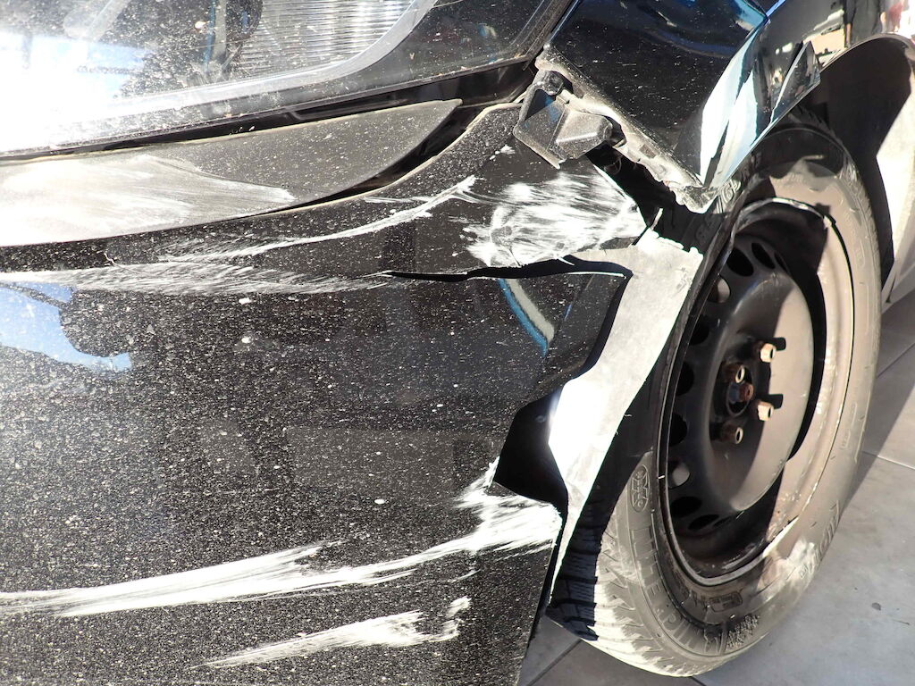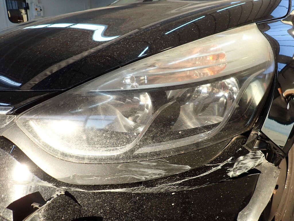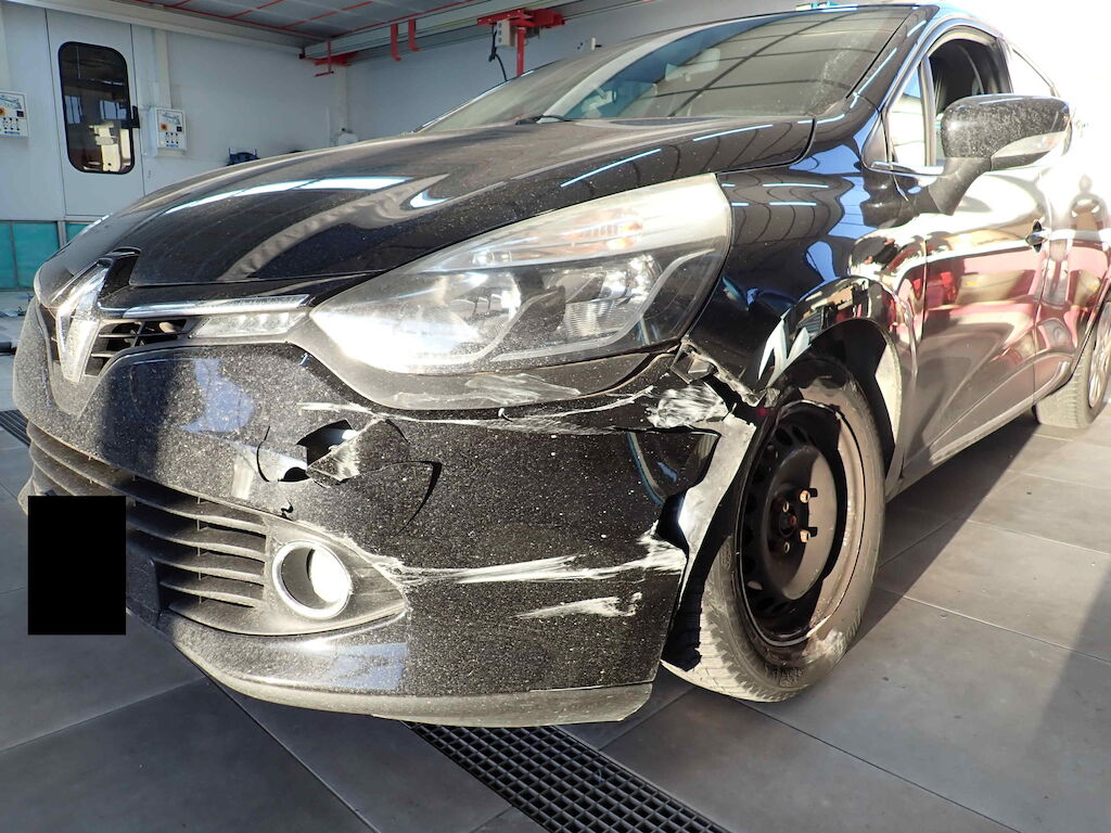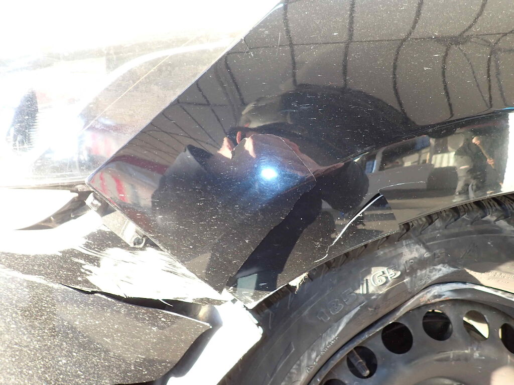 Pare-chocs, traverse, phare, train avant gauche et aile endommagés