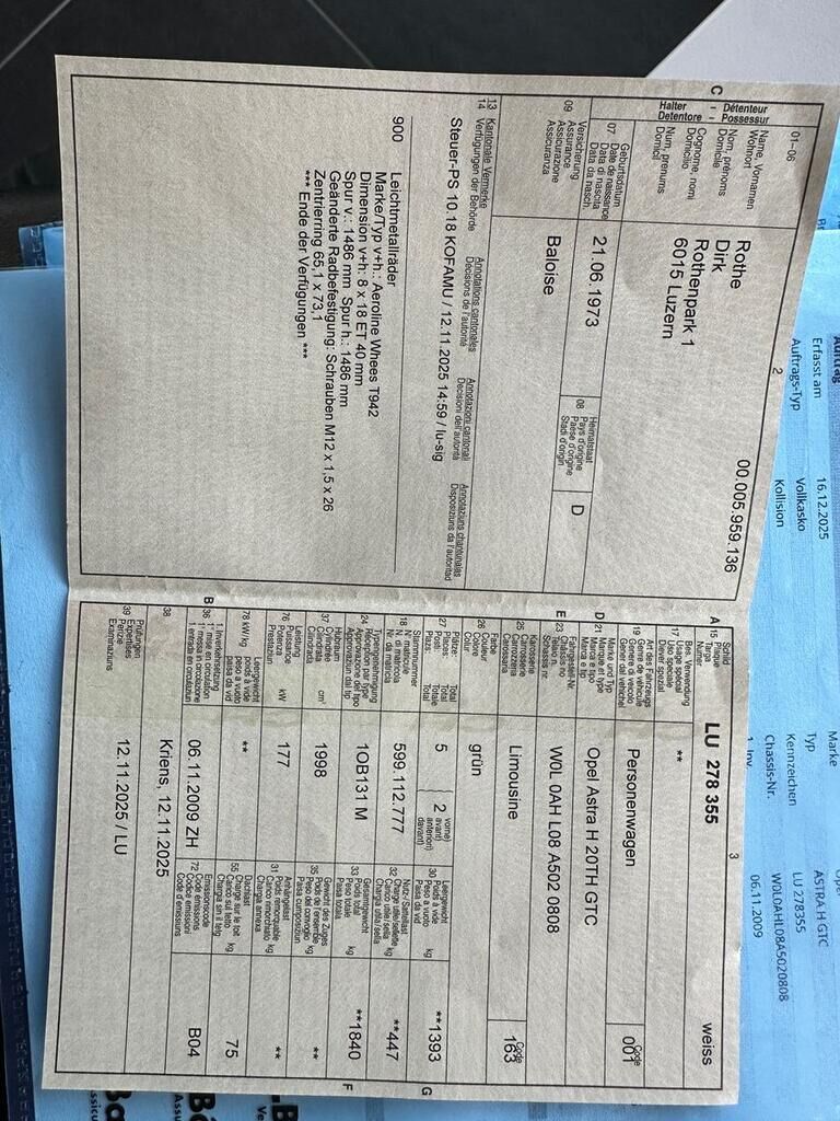 | Costi riparazione | 9’532.05 CHF | Stima |